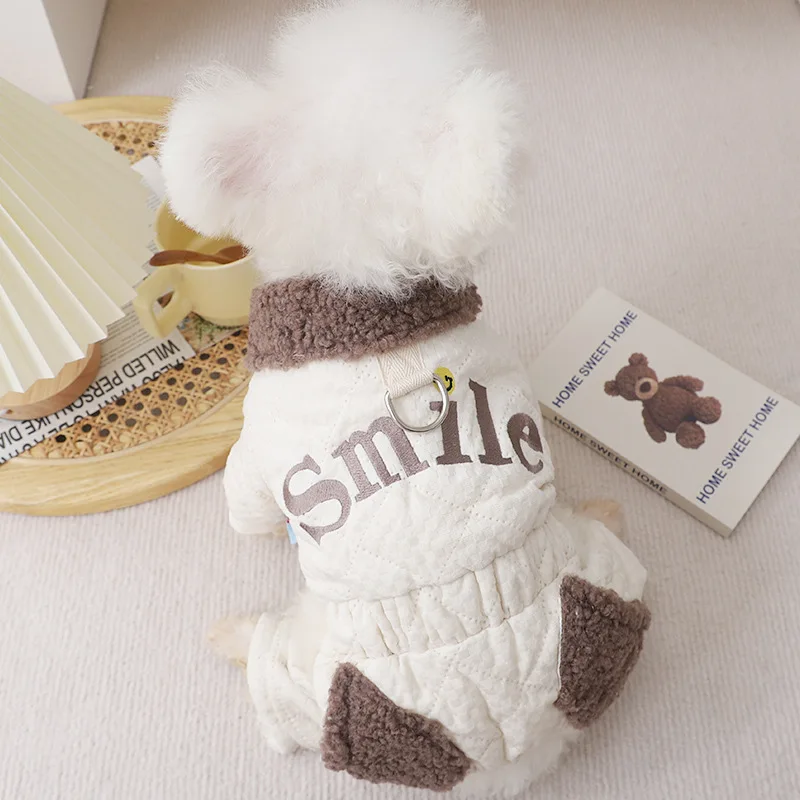 Abrigo de algodón de cuatro patas para perros pequeños, abrigo de invierno cálido y resistente al frío, botón a presión, rejilla de diamante, mascota informal