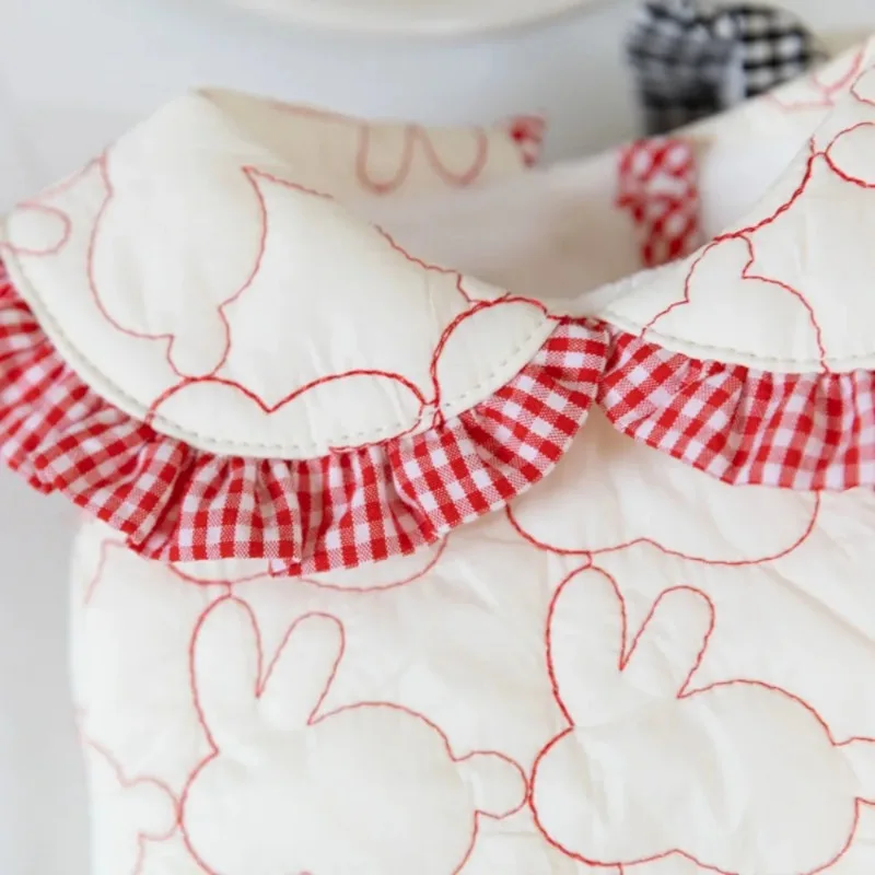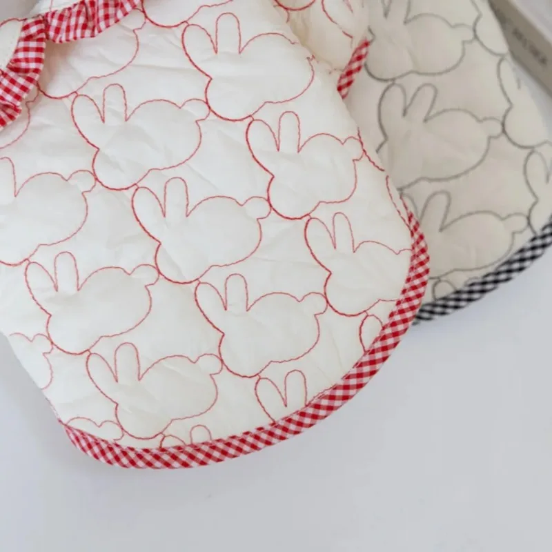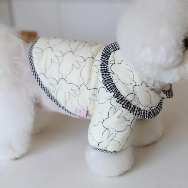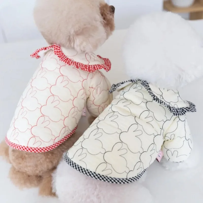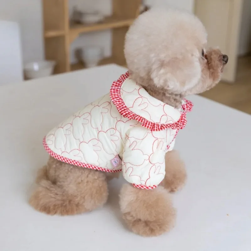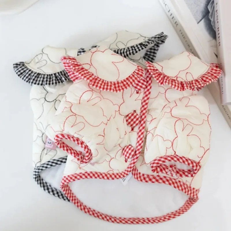 Abrigo de algodón para perro conejo, Parkas bordadas cálidas para invierno, chaquetas con solapa a cuadros, abrigo cálido, ropa para cachorros, ropa para mascotas, oso de peluche