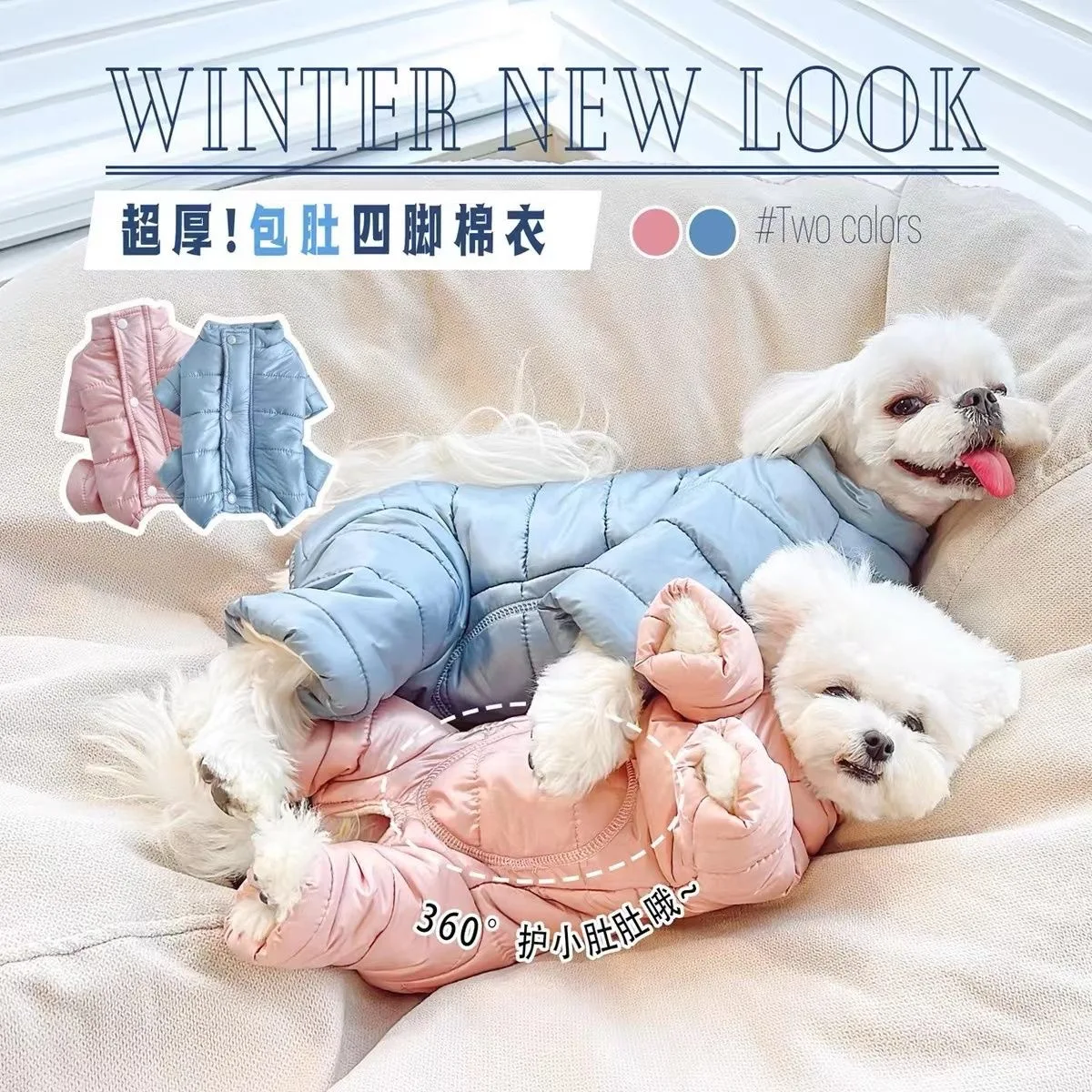 Abrigo de algodón para el vientre para perro, oso de peluche, Schnauzer, perro pequeño, abrigo grueso y cálido de cuatro patas, ropa para cachorro, pijamas para perro