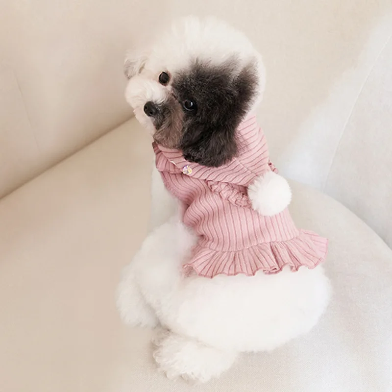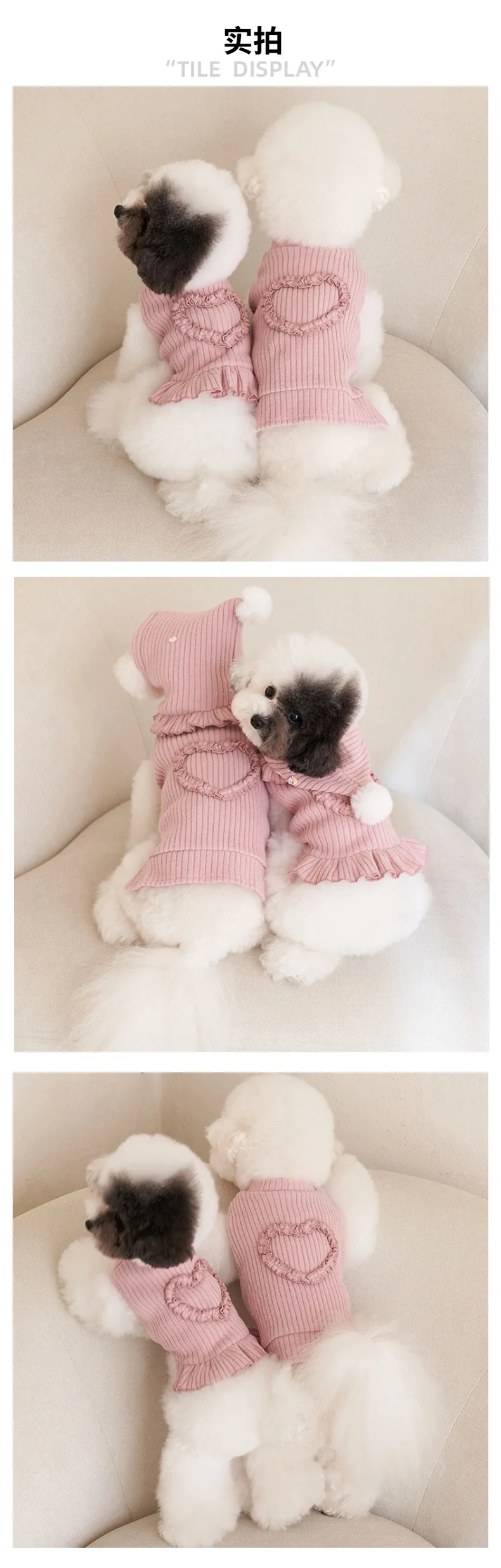 Abrigo Base con capucha de Navidad y Año Nuevo para mascotas, falda gruesa de amor para mascotas y gatos, ropa para perros pequeños, otoño e invierno