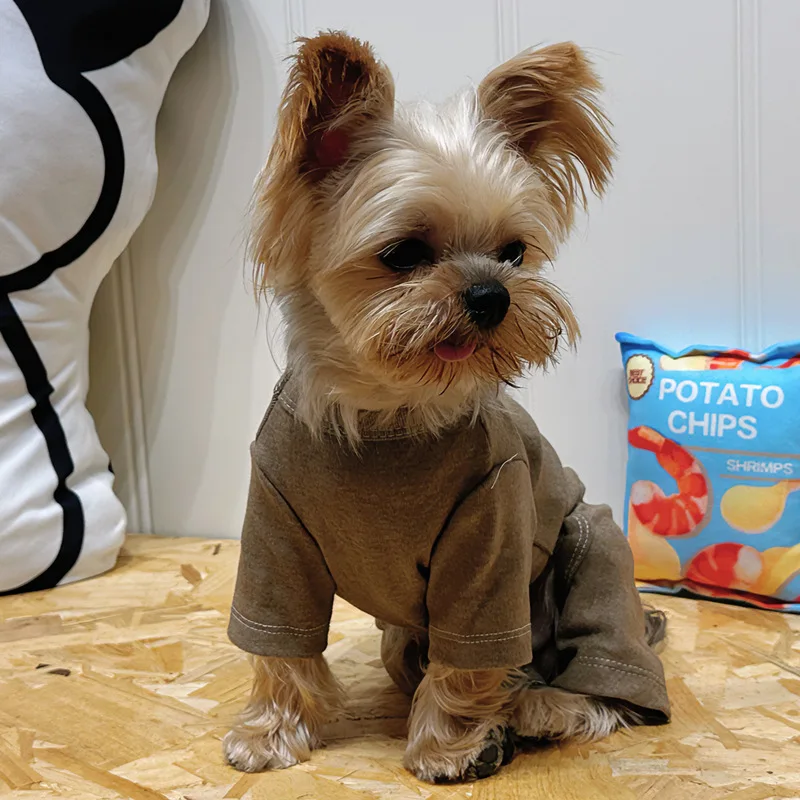 Suéter muy lindo, suave. Le queda bien a Yorkie, peso 3.300, talla M. Parece pequeño pero estira bien. Quiero pedir otro en un color diferente.