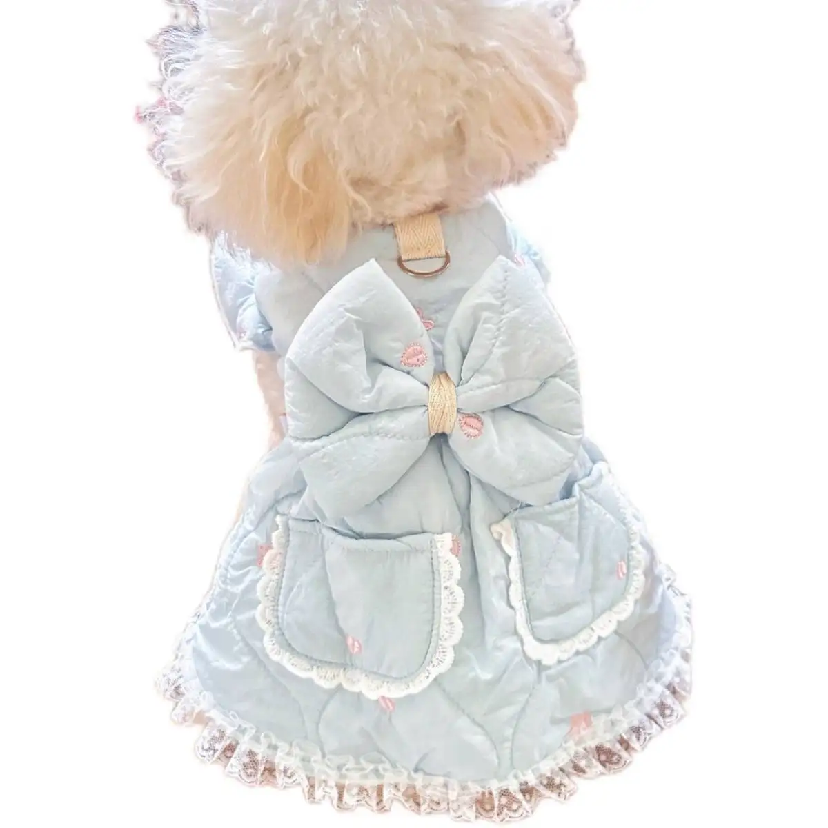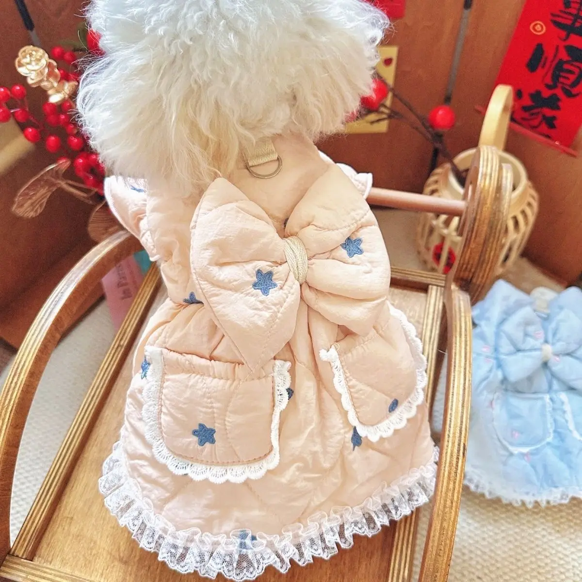 Abrigo bordado de estrellas para perros, falda de amor con lazo de peluche de Yorkshire, vestidos para perros pequeños, ropa para cachorros, Otoño/Invierno