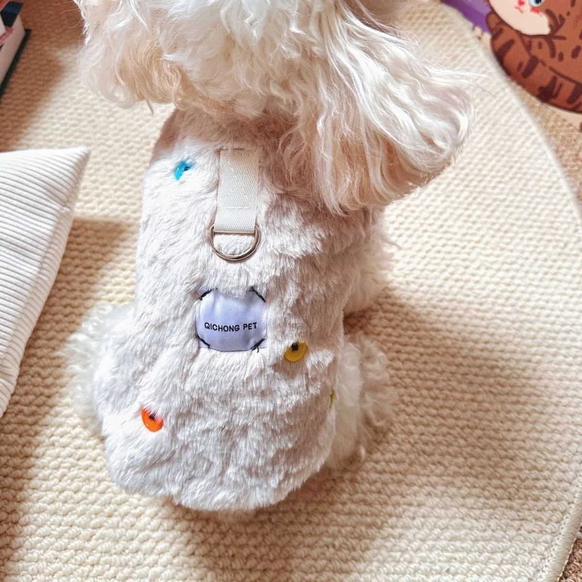 Abrigo bordado de felpa para mascotas, chaleco de oso de peluche para perros, abrigo para gatos, ropa para perros pequeños, ropa para cachorros, otoño e invierno