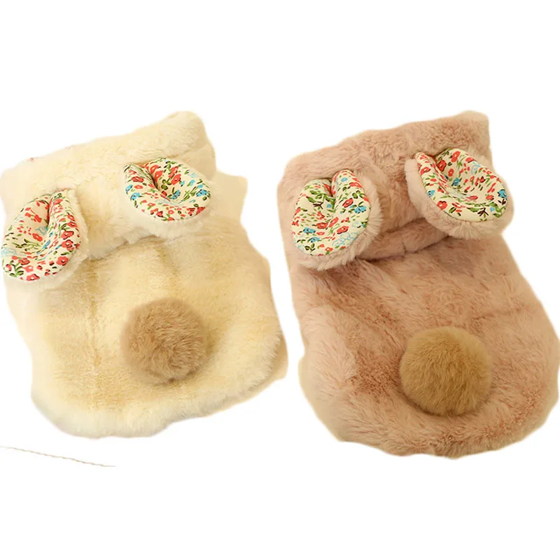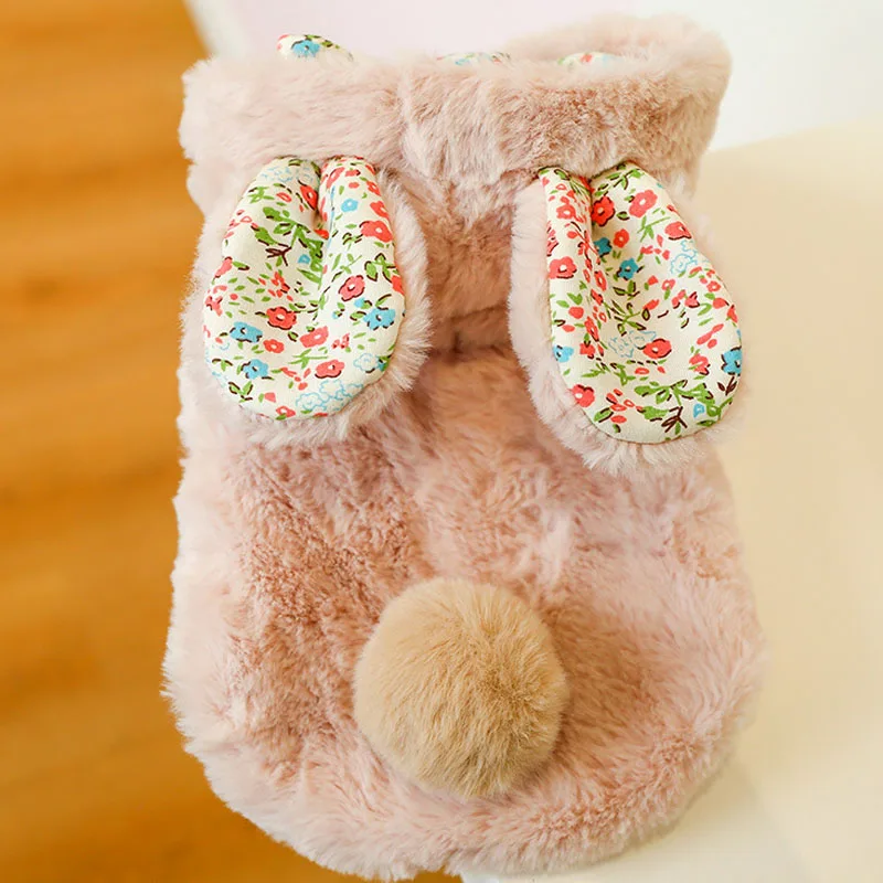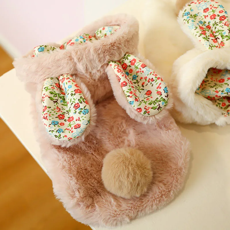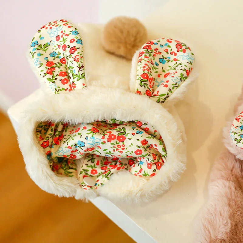 Abrigo cálido para gatos, ropa para perros de princesa, chaqueta rosa y blanca para mascotas, abrigo Parka con orejas de conejo Floral de piel falsa suave para invierno para niñas, perros pequeños
