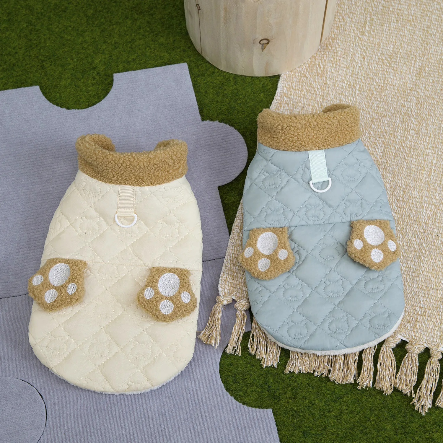 Abrigo cálido grueso con cuello de felpa para otoño/invierno para mascotas, abrigo de dos patas para perros al aire libre, suéter para perros pequeños, ropa para cachorros