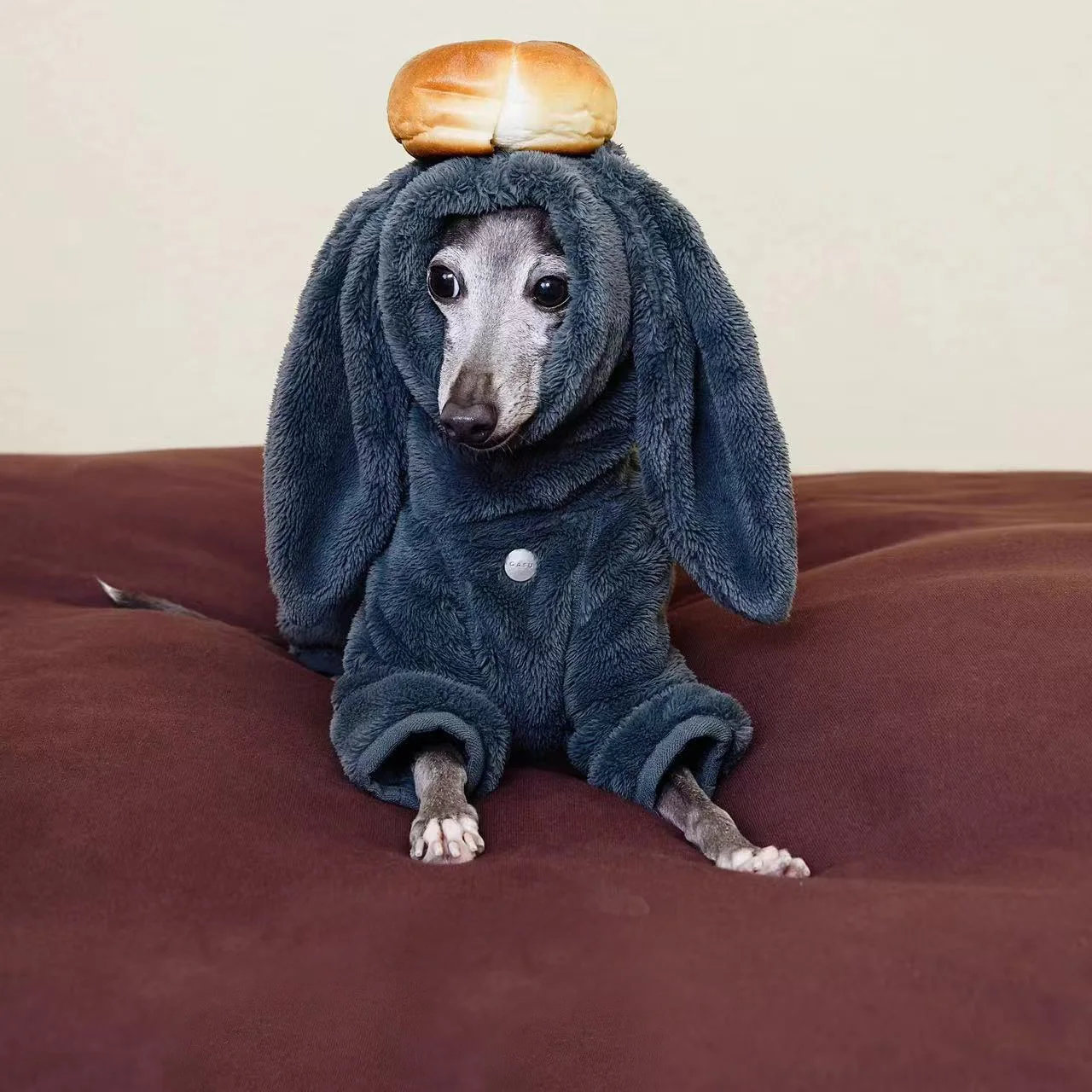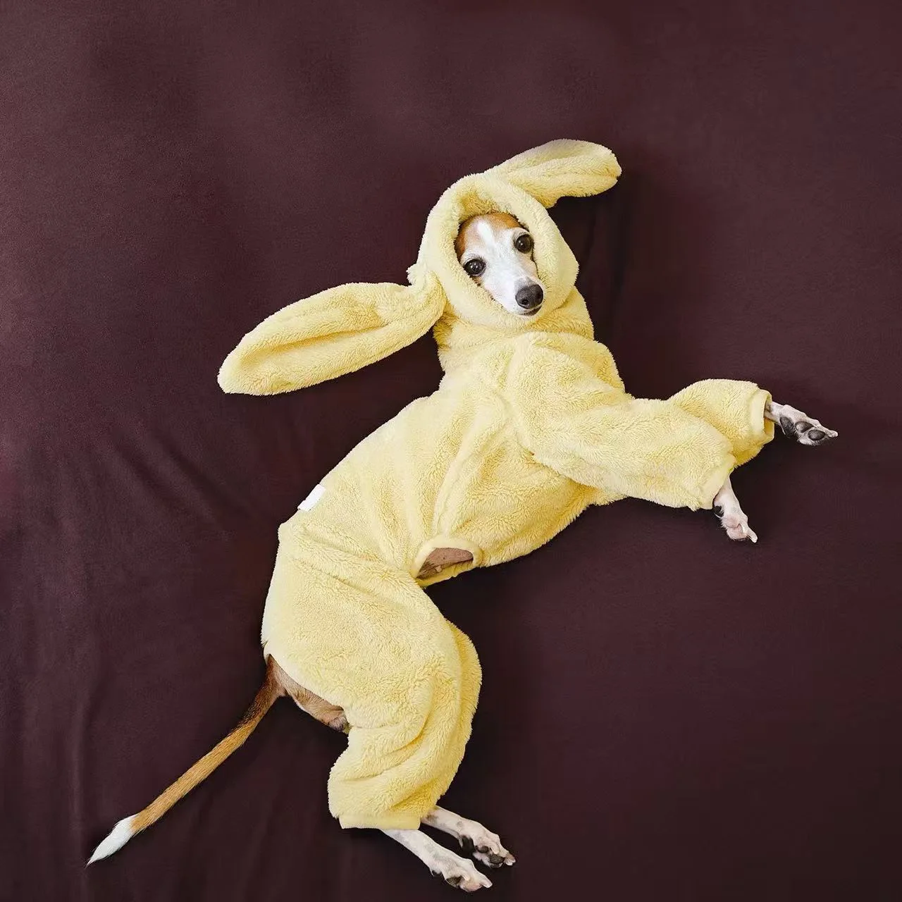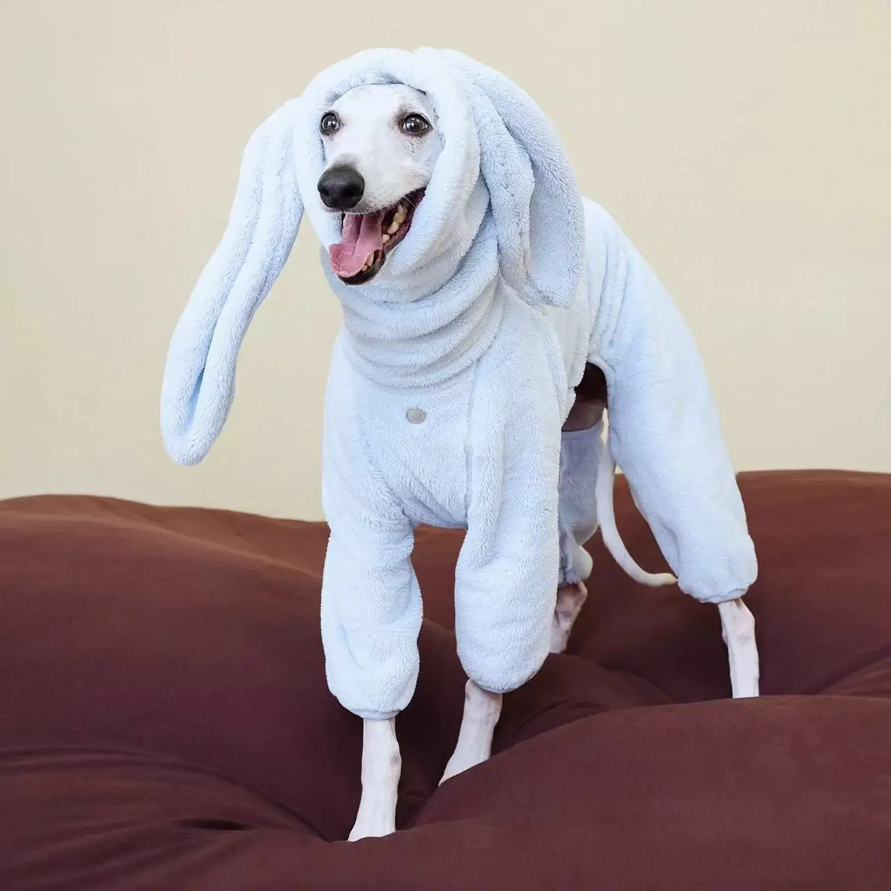 Abrigo cálido de invierno con orejas de conejo para chaqueta pequeña de cuello alto a prueba de viento de color gris italiano medio para Whippet en climas fríos