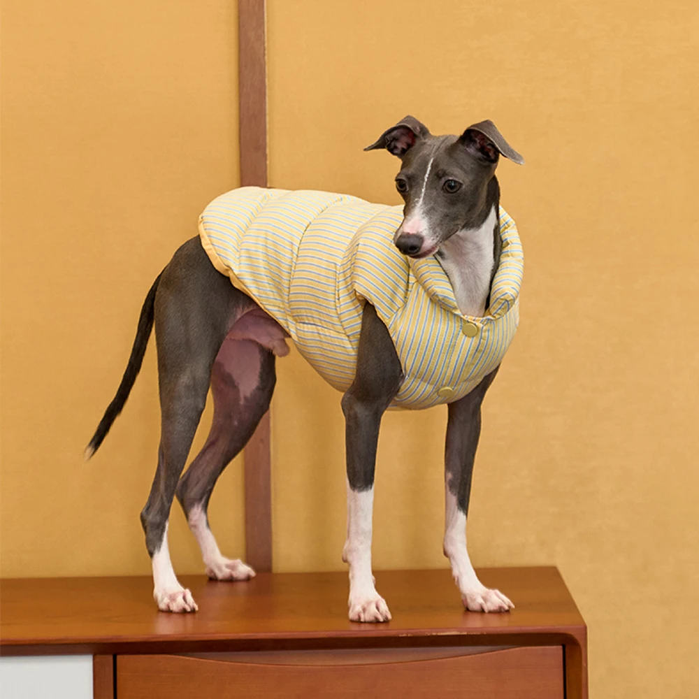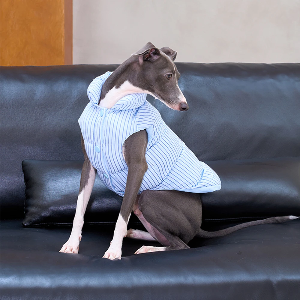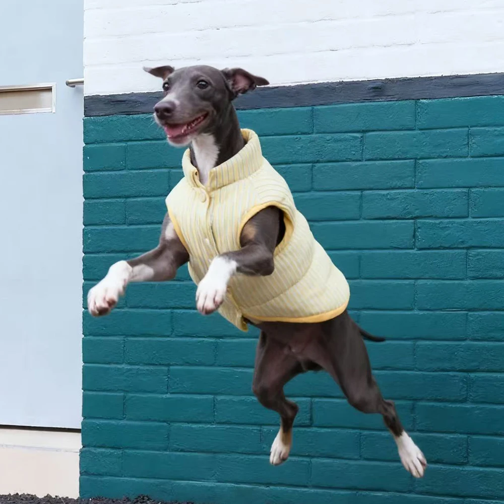 Abrigo cálido de invierno para quitarse rápidamente, chaqueta italiana con cremallera a rayas a prueba de viento para perros pequeños Whippet en otoño