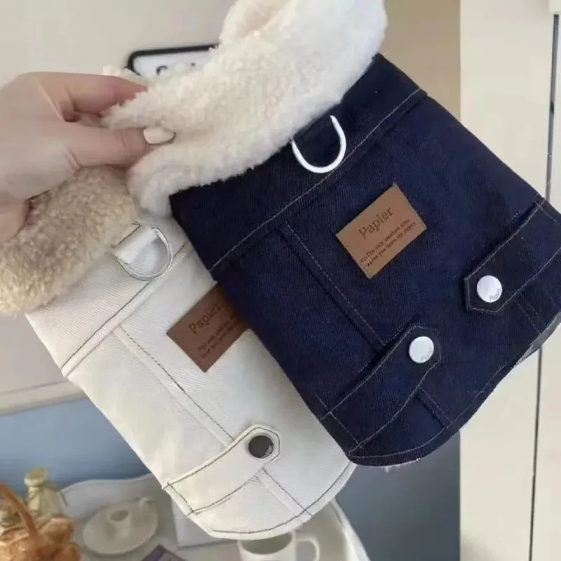 Abrigo cálido de piel de cordero para mascotas, chaqueta gruesa de tracción, abrigo de algodón para cachorros, ropa para mascotas, oso de peluche de cordero, ropa vaquera para perros pequeños