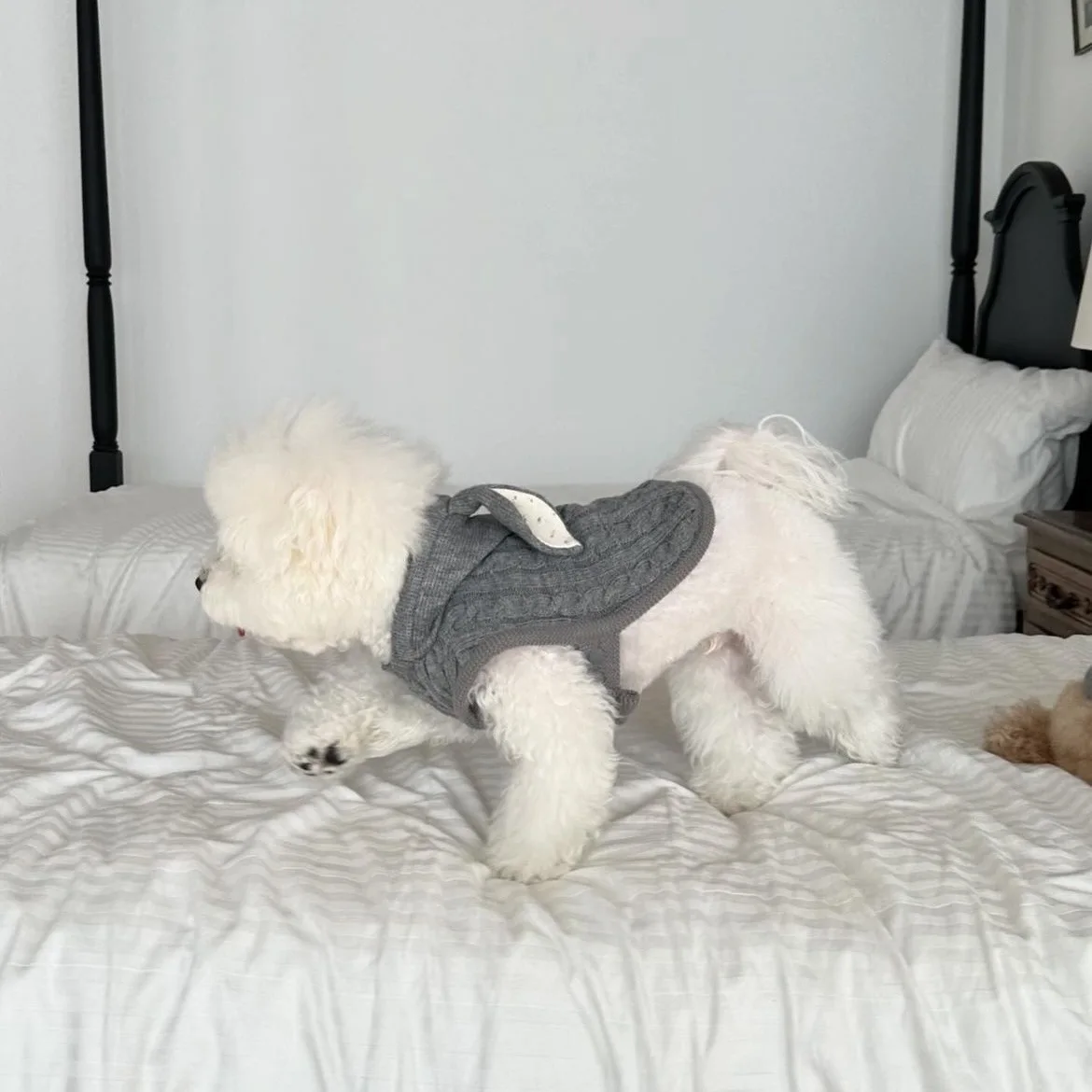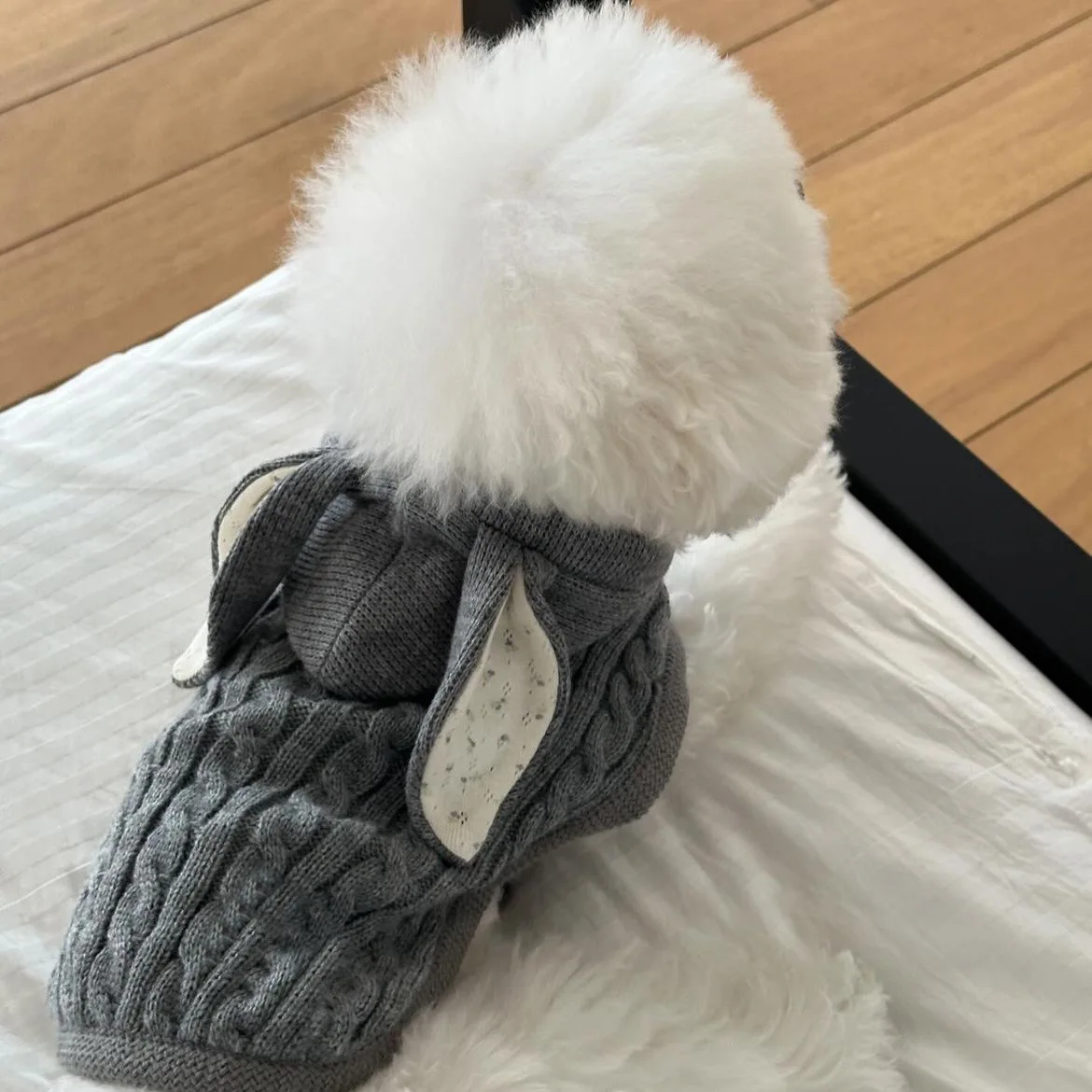 Abrigo con capucha y Orejas de conejo de punto para mascotas, ropa cálida para mascotas, capa, chal, peluche de gato pequeño y mediano, Otoño Invierno engrosado