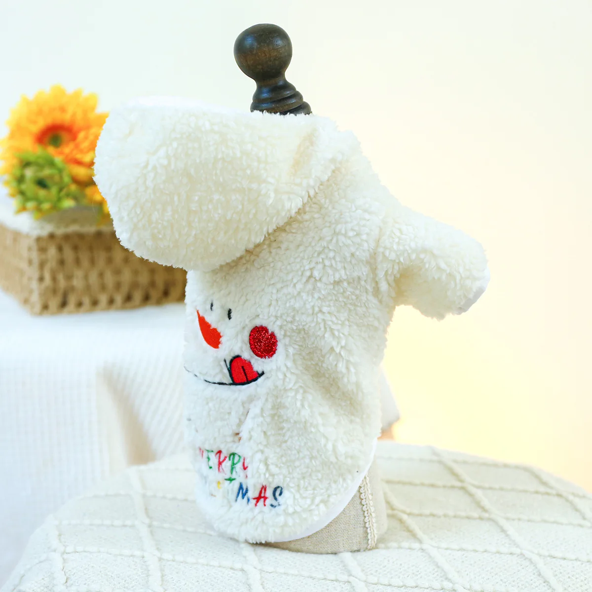 Abrigo con capucha de piel de cordero para mascotas, chaqueta navideña para perros y gatos, ropa esponjosa de Navidad, lindo muñeco de nieve, ropa para cachorros, abrigos