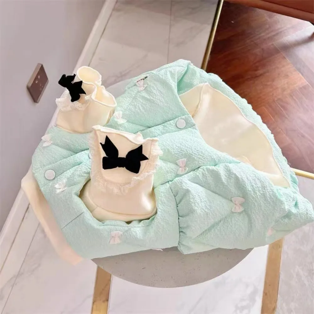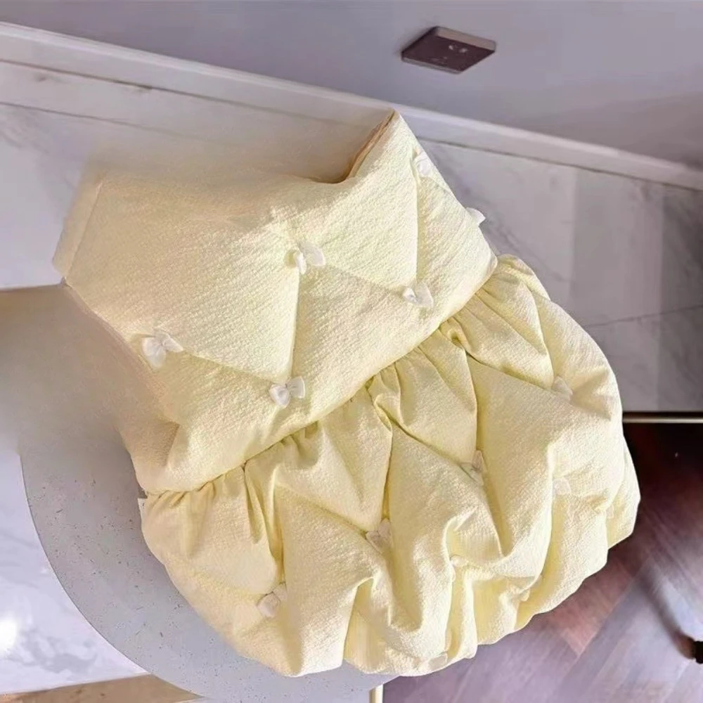 Abrigo de Color helado para mascotas, falda esponjosa de terciopelo y algodón añadido con lazo de mariposa, chaleco para gato, oso de peluche, accesorios para perros, Otoño e Invierno