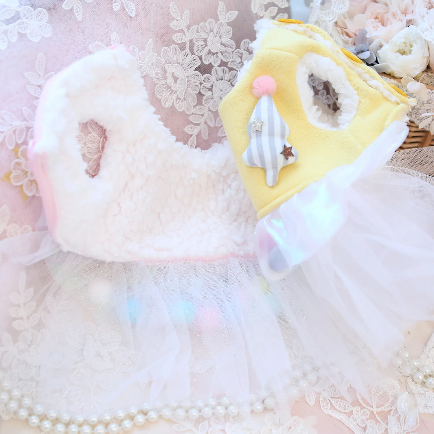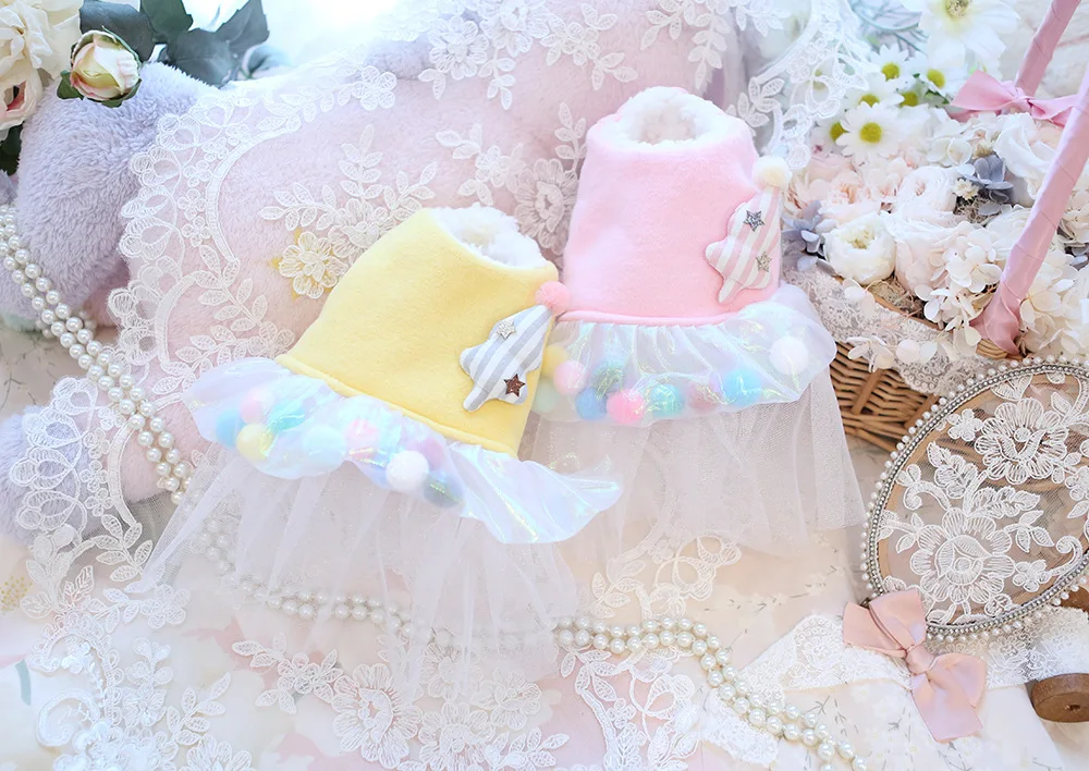 Abrigo de color helado para mascotas, vestido de malla, vestido de doble capa, ropa para cachorros y gatos, vestidos para perros pequeños, Otoño e Invierno
