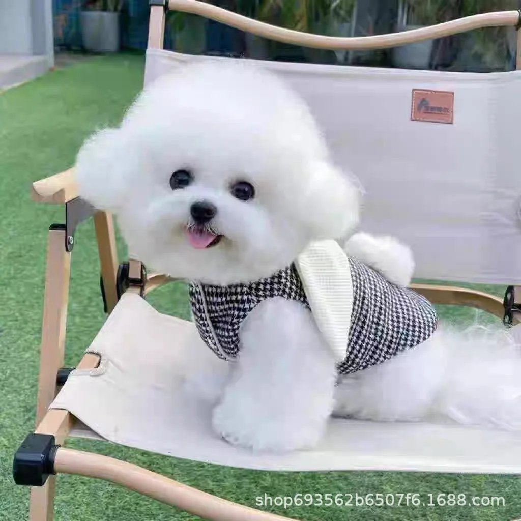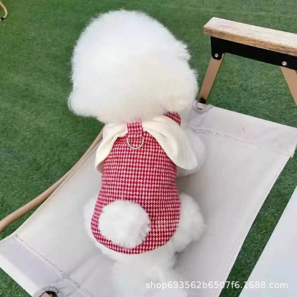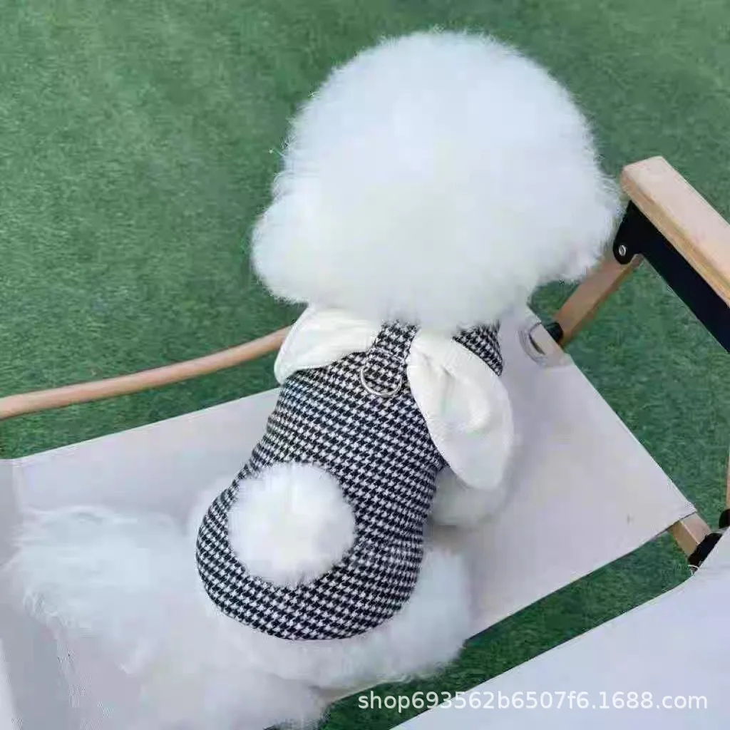 Abrigo a cuadros de otoño/invierno para mascotas, lindas Orejas de conejo con chaleco de terciopelo, camiseta sin mangas de peluche, ropa para perros pequeños, ropa para cachorros