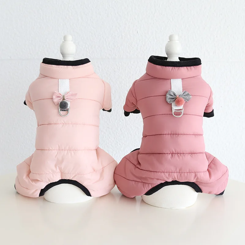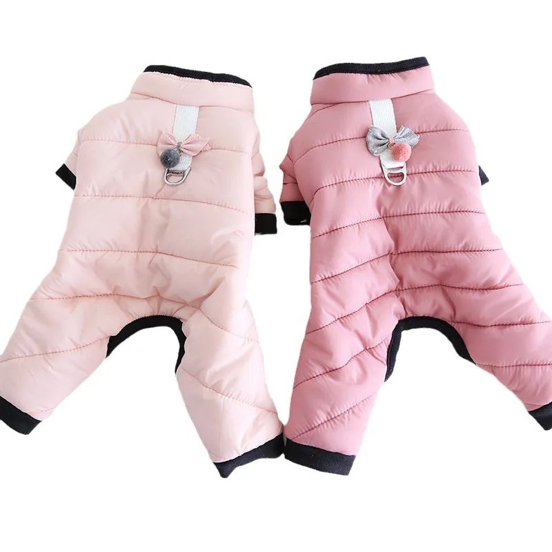 Abrigo de cuatro patas de algodón con cuello alto para mascotas, Parkas para perros, mono de burbujas para otoño e invierno, traje para gato de peluche, pantalones de cuatro patas para pan