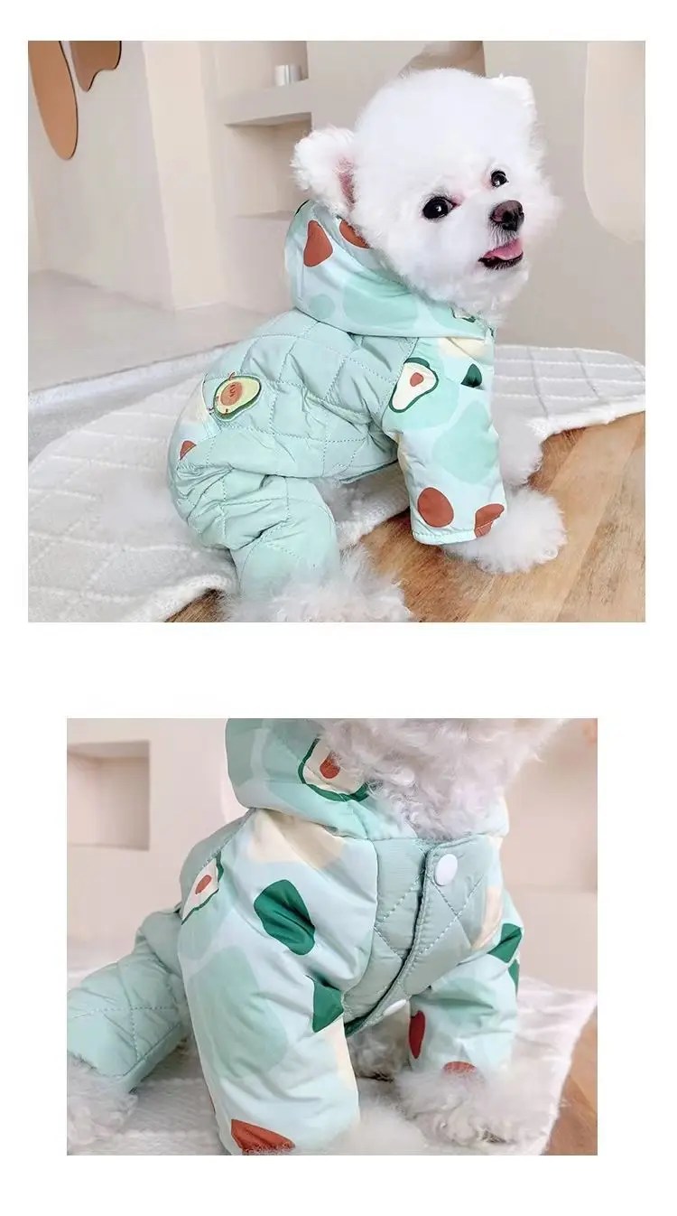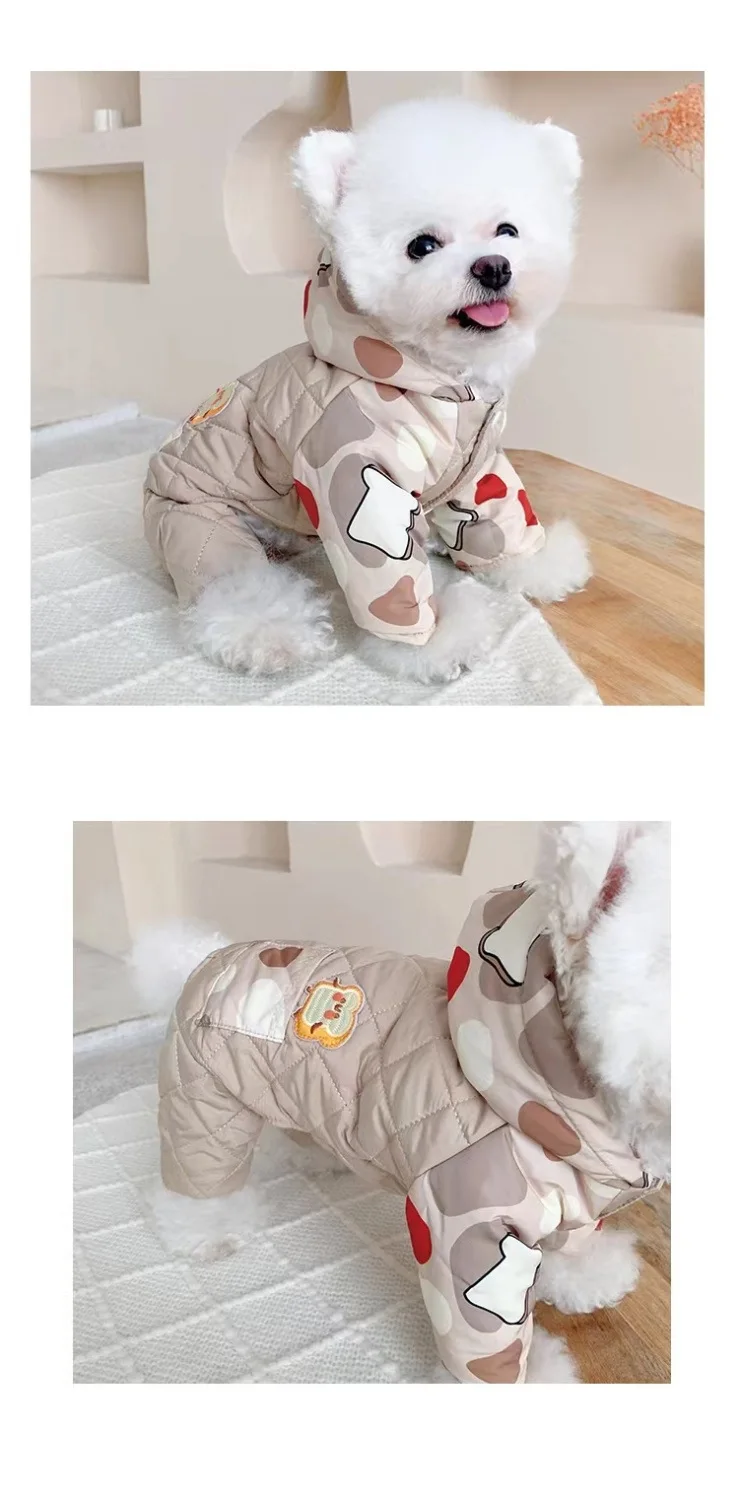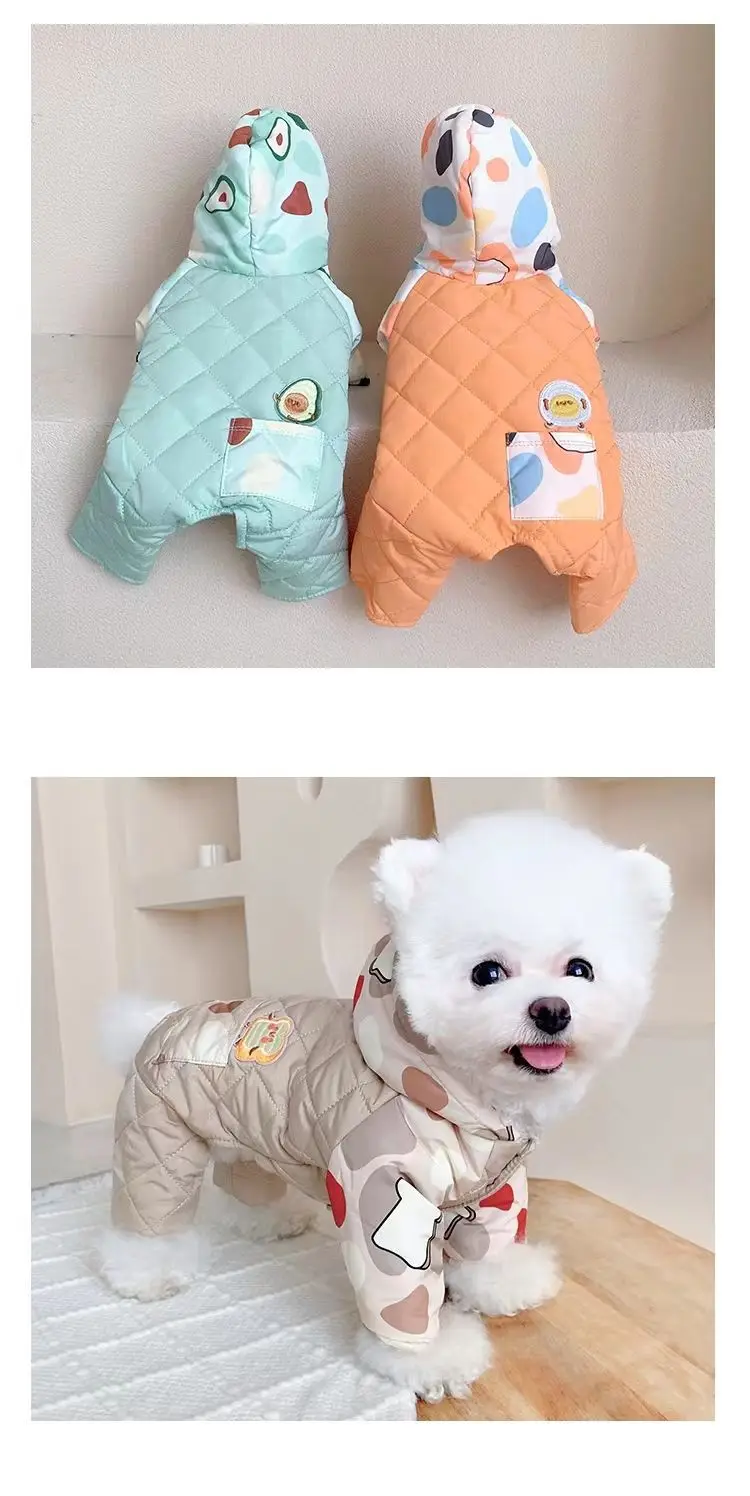 Abrigo de cuatro patas con capucha para mascotas, mono cálido y a prueba de viento para perros, mono de cuatro patas, Schnauzer de peluche para mascotas, ropa para cachorros de otoño e invierno