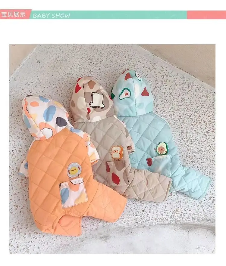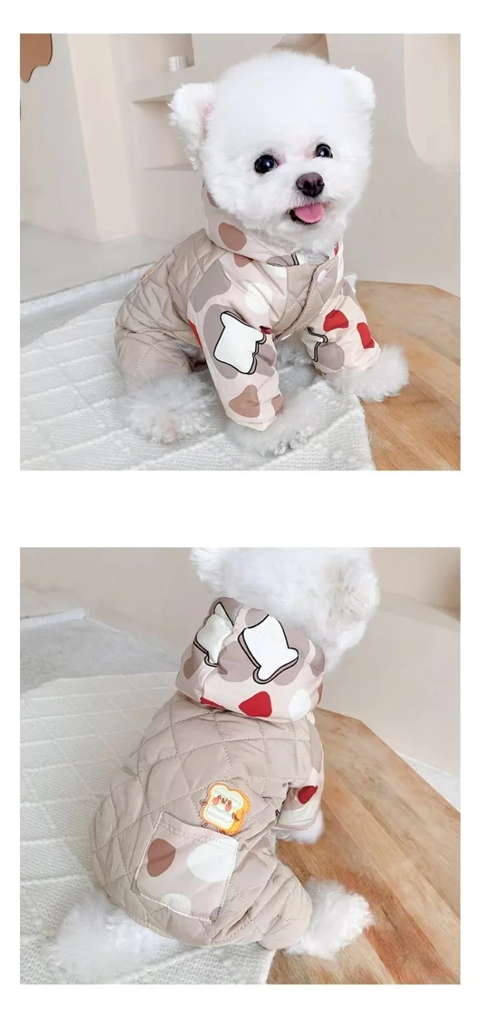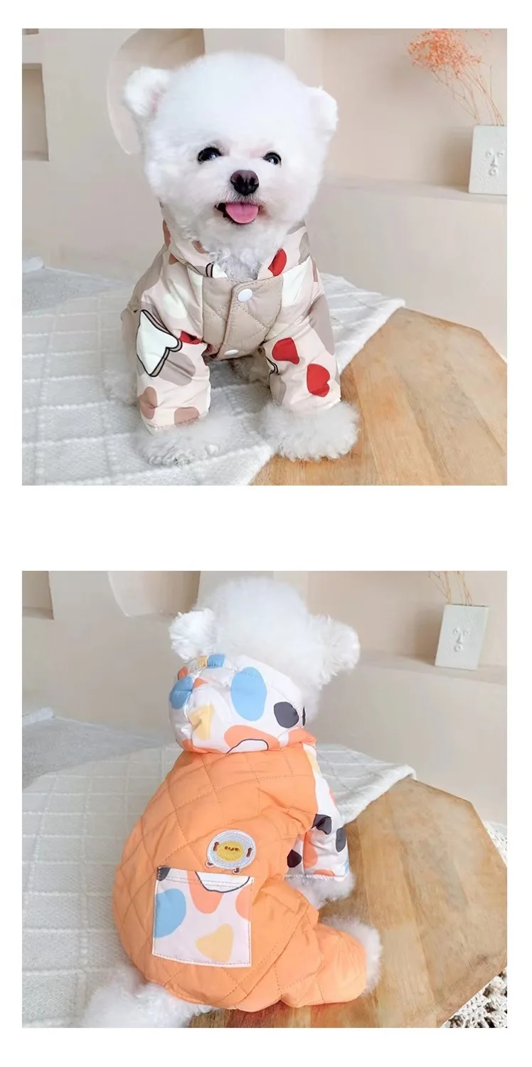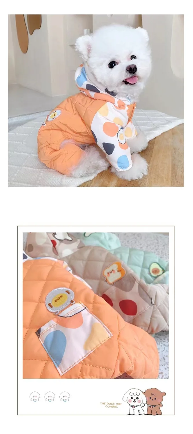 Abrigo de cuatro patas con capucha para mascotas, mono cálido y a prueba de viento para perros, mono de cuatro patas, Schnauzer de peluche para mascotas, ropa para cachorros de otoño e invierno