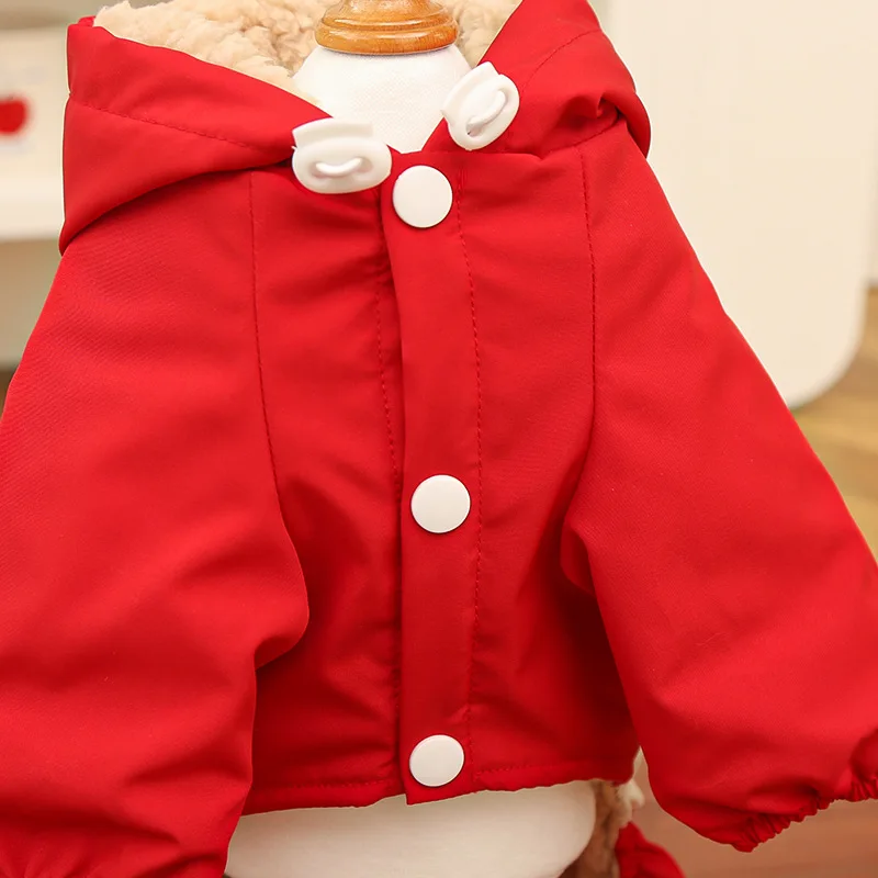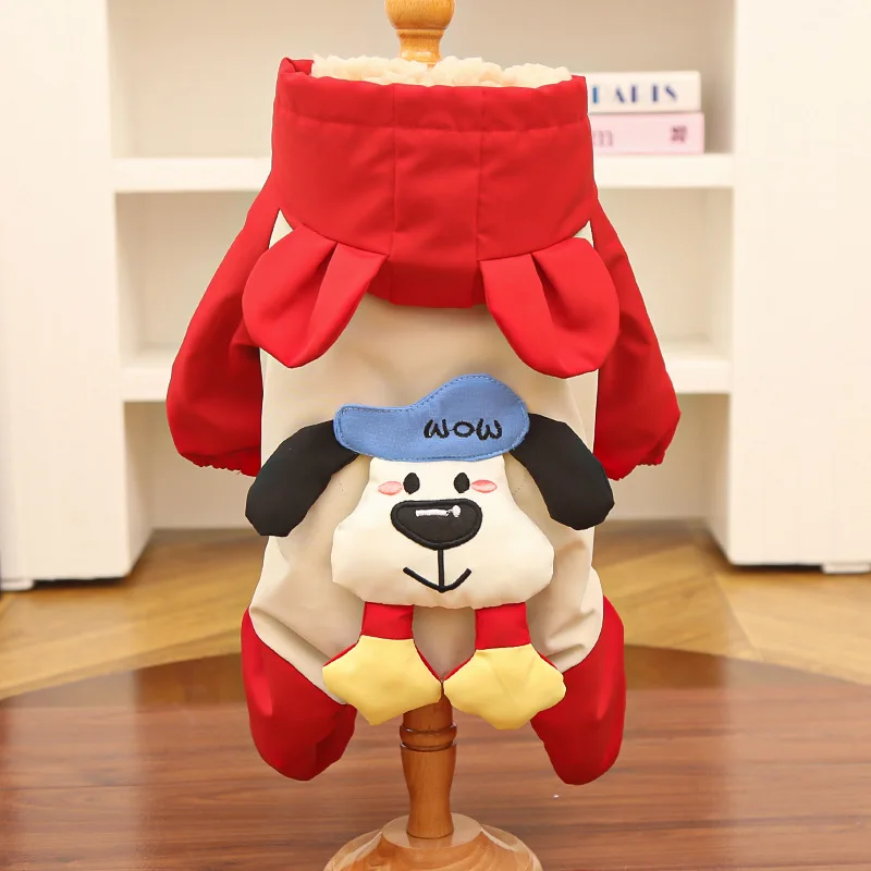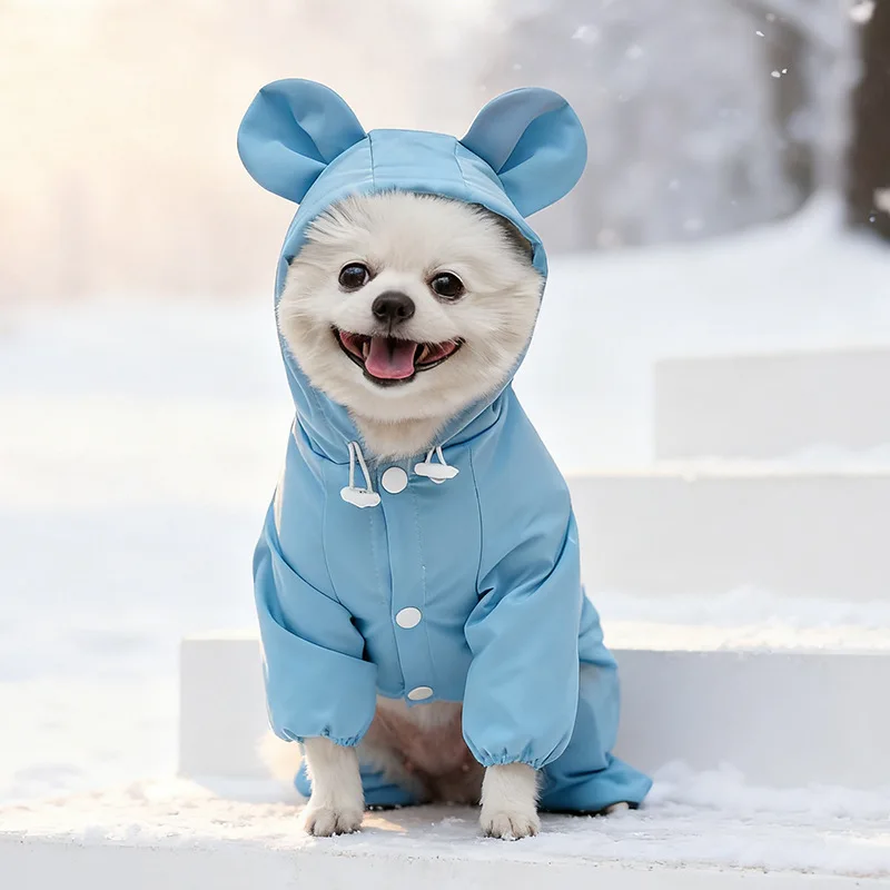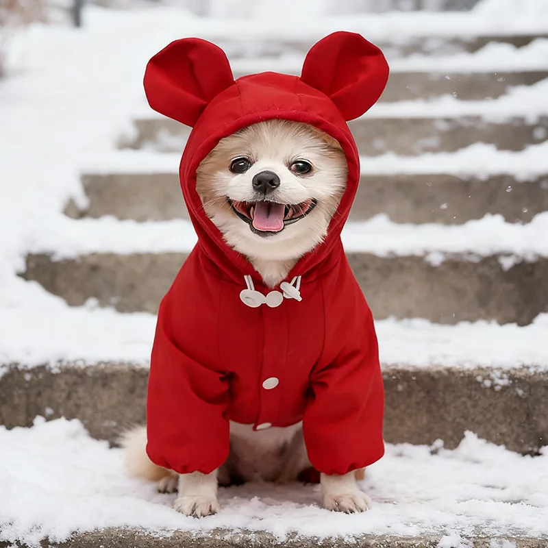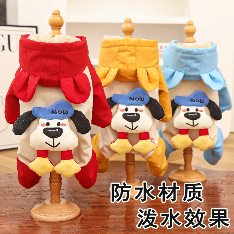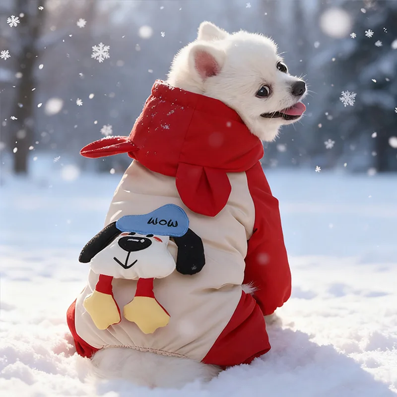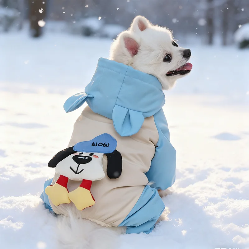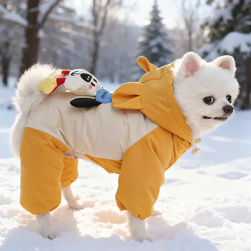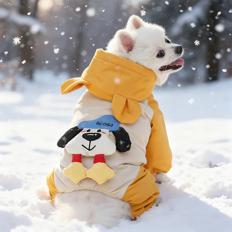 Abrigo de cuatro patas de felpa gruesa para nieve y invierno para mascotas, pantalones de cuatro patas con capucha para mascotas, ropa para cachorros, ropa para perros pequeños