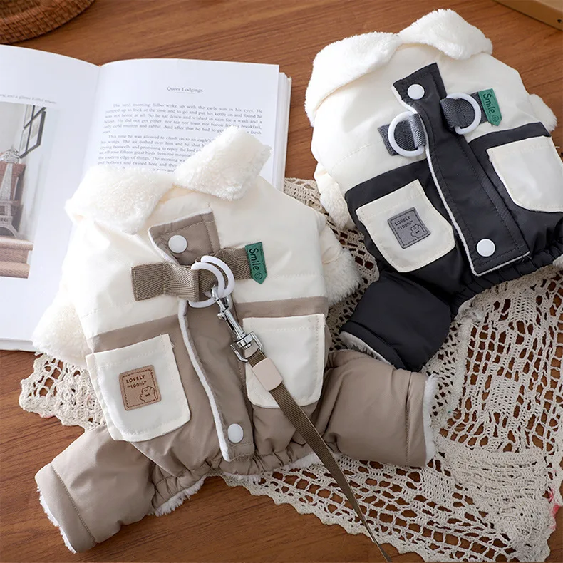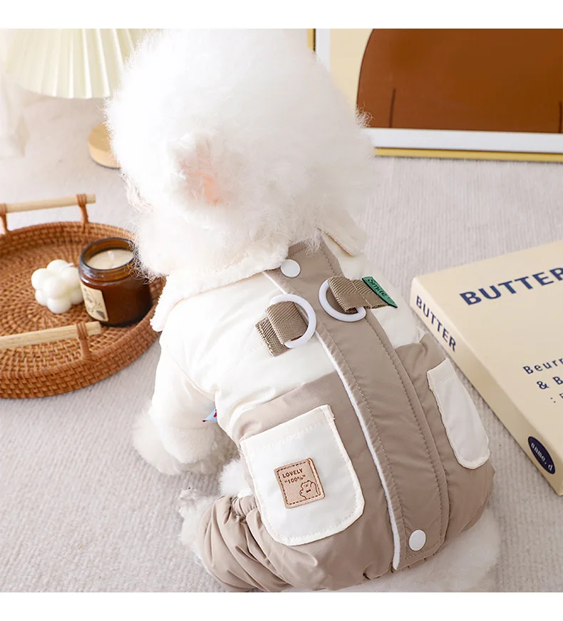 Abrigo de cuatro patas para perros pequeños, mono de oso de peluche, abrigo de felpa para mascotas, se puede tirar y mantener, Parkas cálidas para perros, otoño e invierno