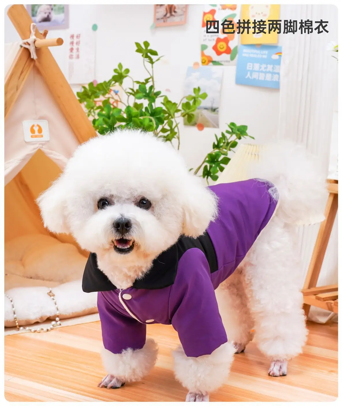 Abrigo de cuello alto para mascotas, Parkas para cachorros y gatos, piernas empalmadas, ropa de algodón de cuatro colores, osos de peluche, perros pequeños, Otoño e Invierno