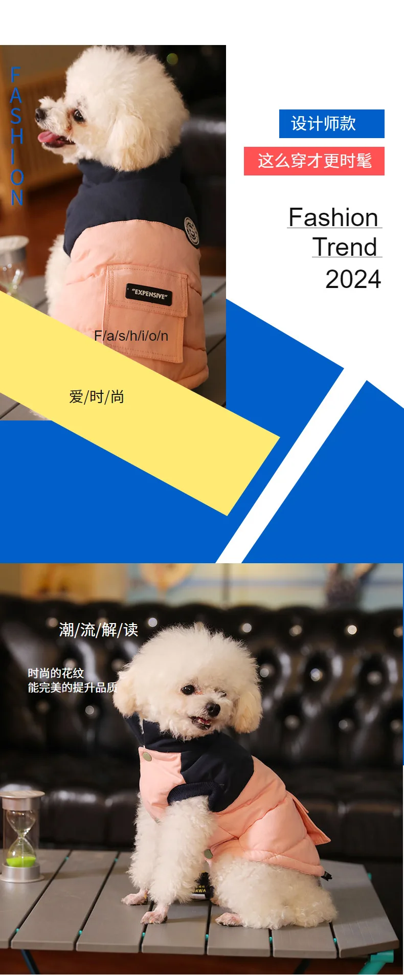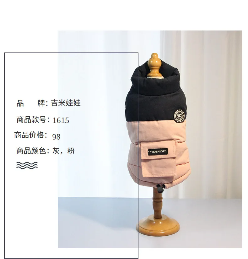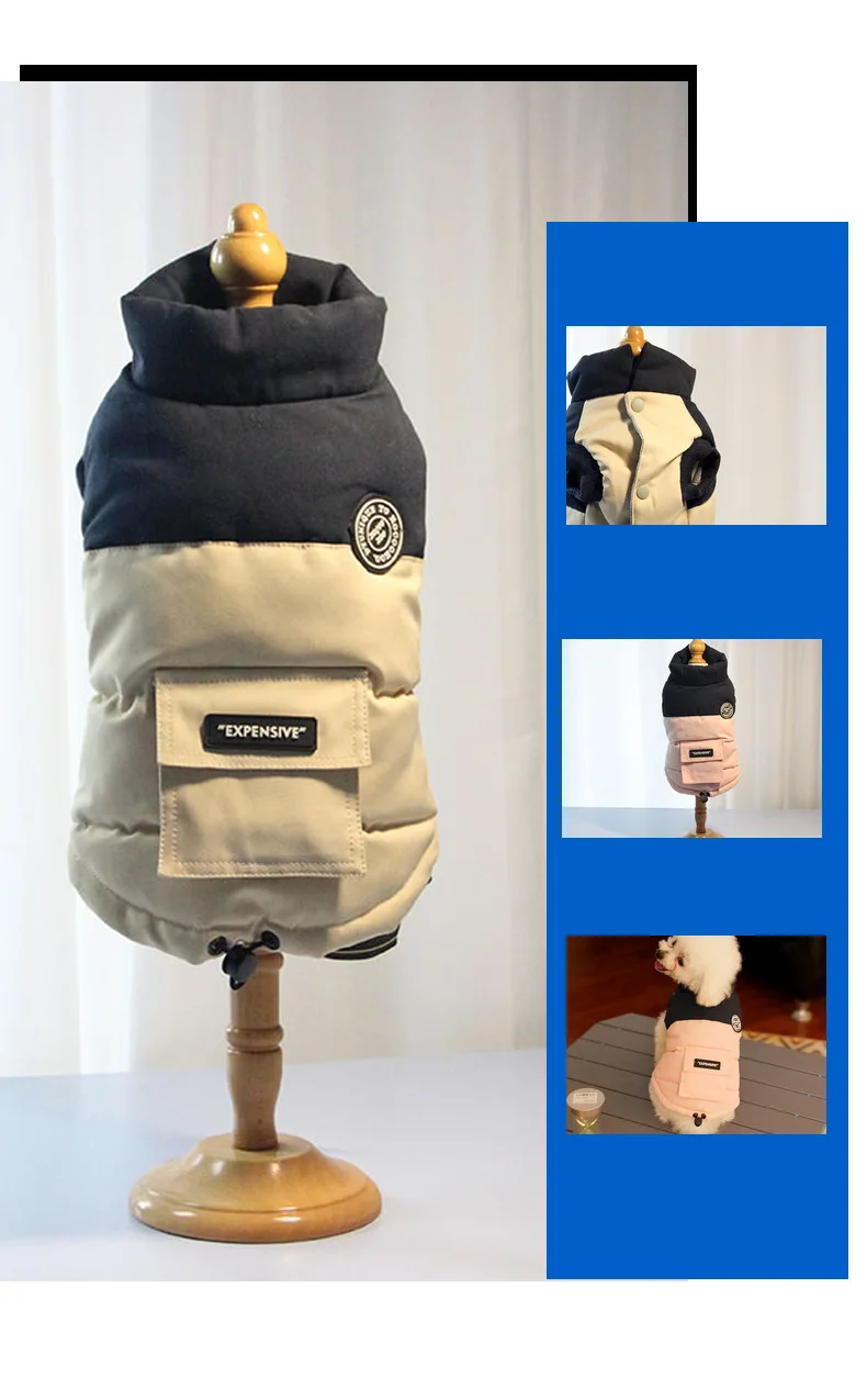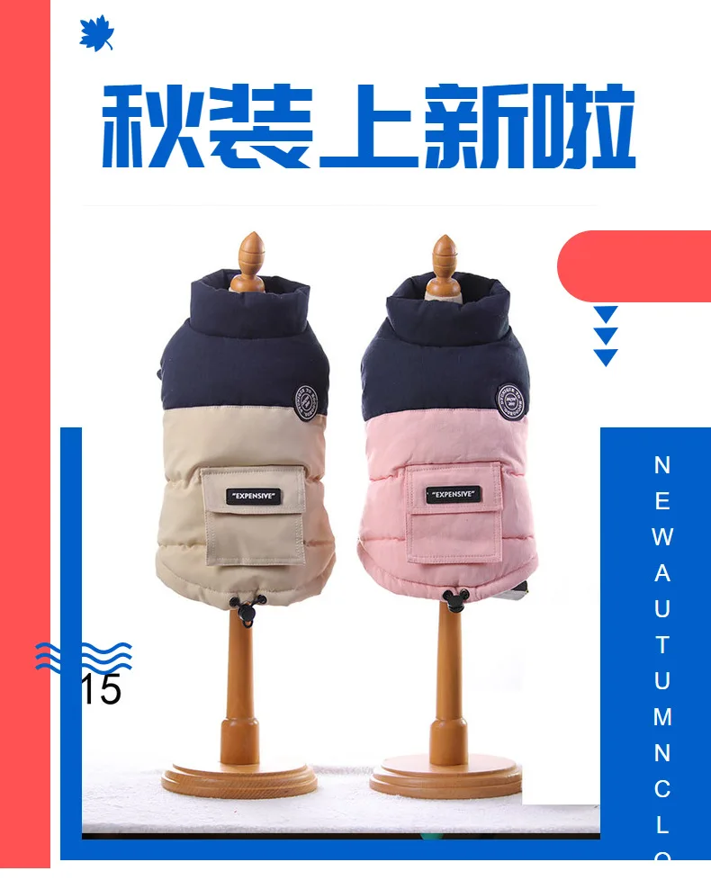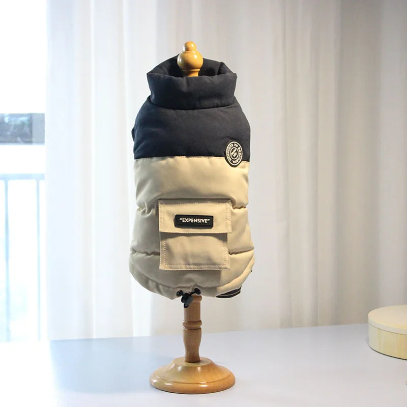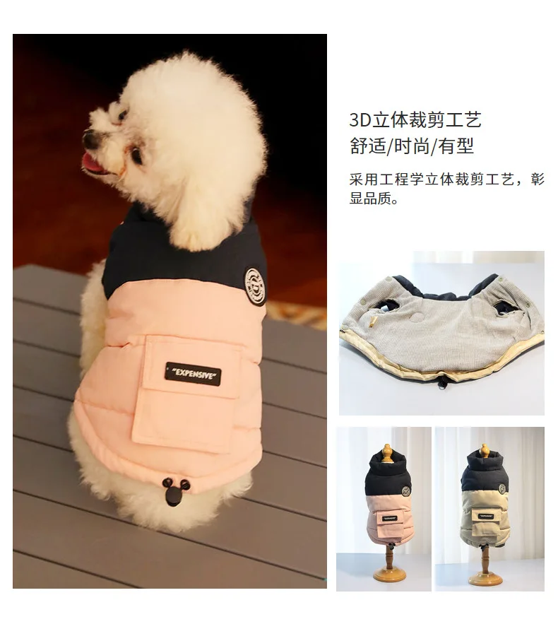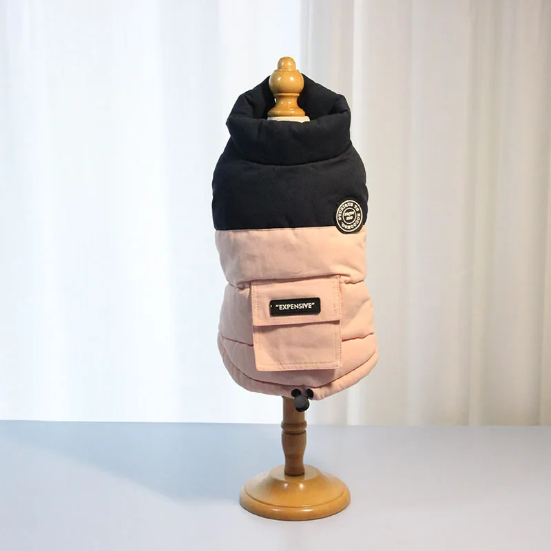 Abrigo de cuello alto para mascotas, Parkas para perros de otoño/invierno, abrigo con bolsillo en contraste, ropa para cachorros de peluche de otoño/invierno, ropa para perros pequeños