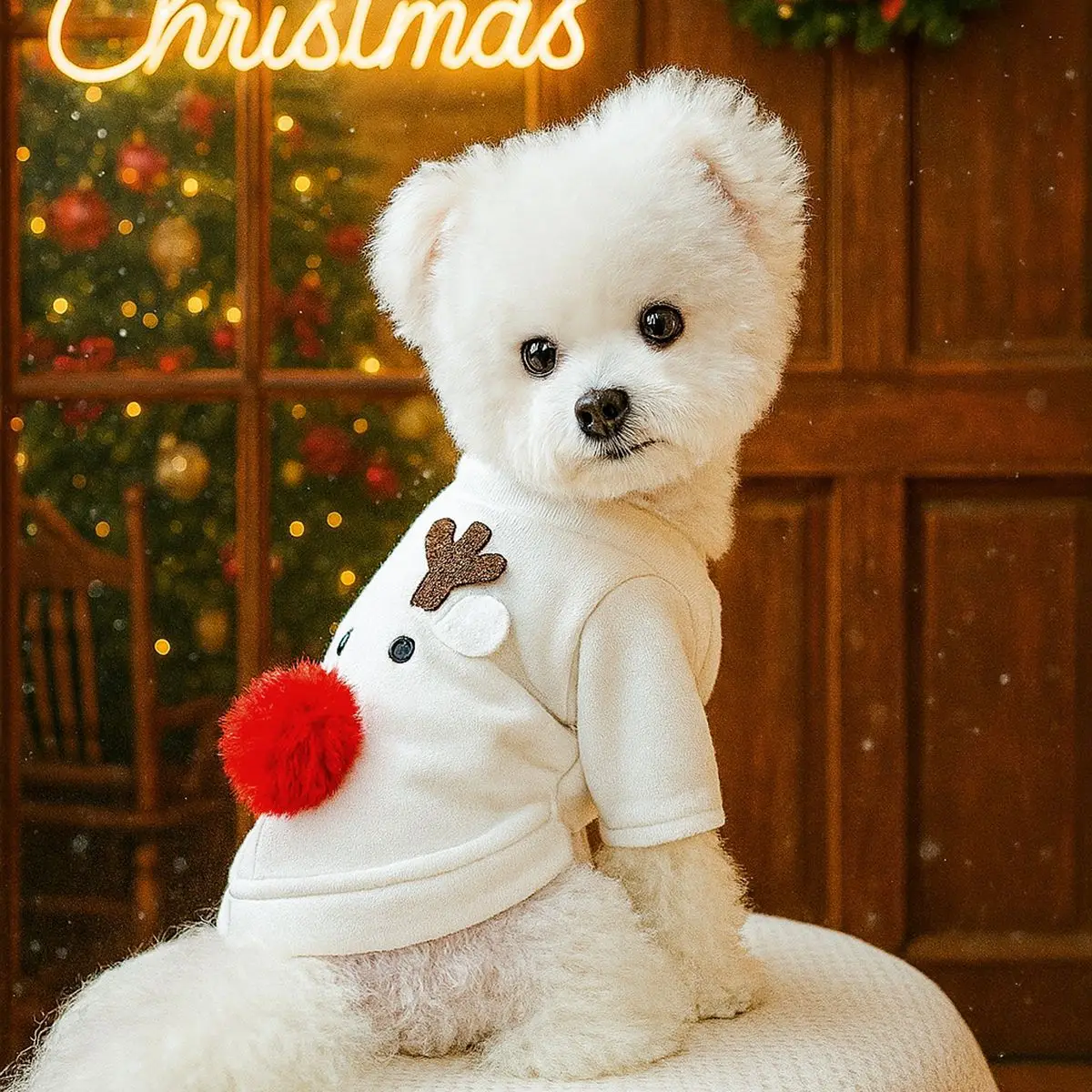 Abrigo de cuello alto de Navidad para otoño/invierno para mascotas, abrigo informal de alce para gatos, ropa para cachorros, ropa para perros pequeños