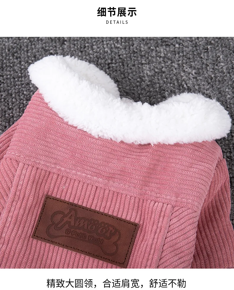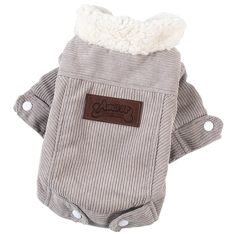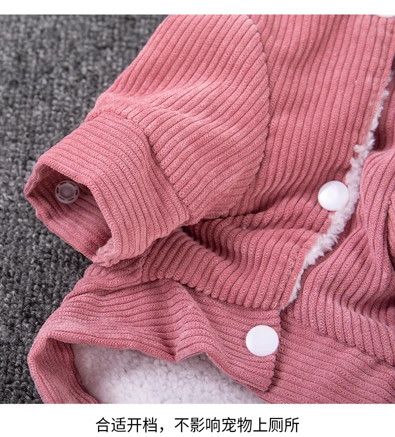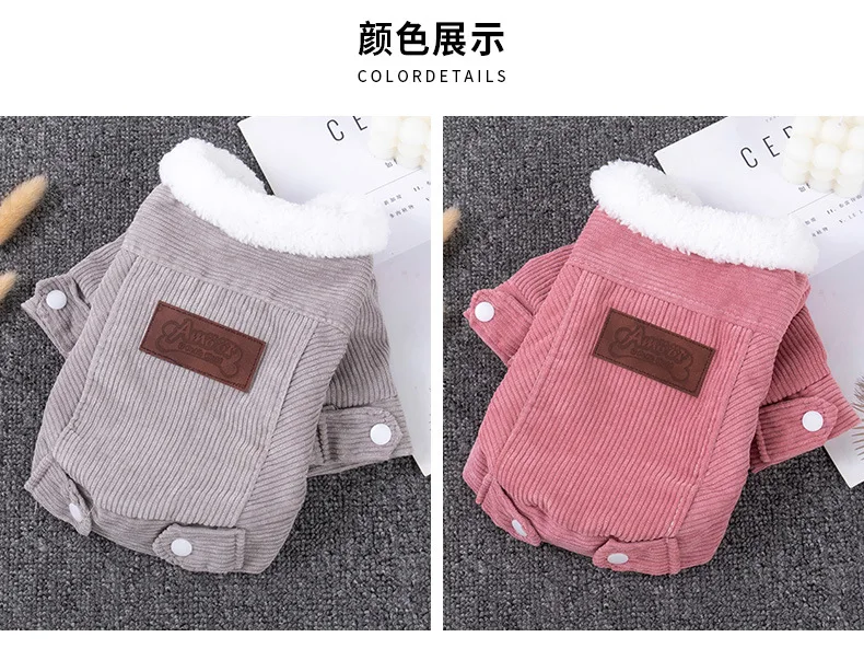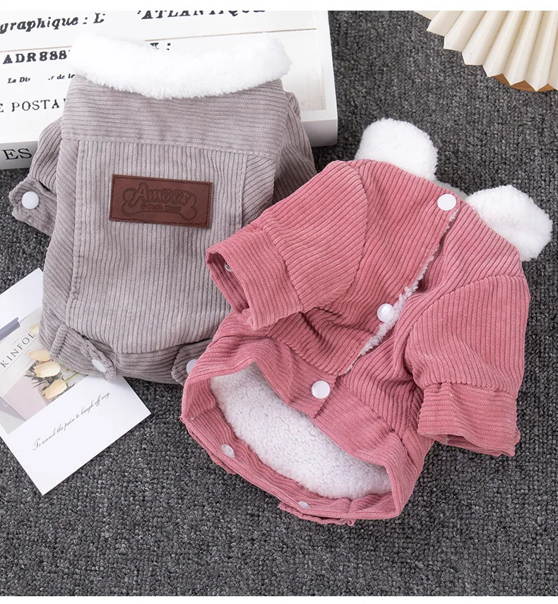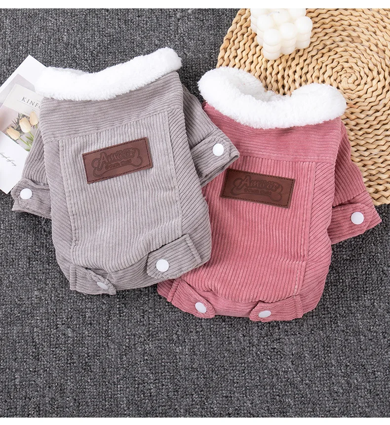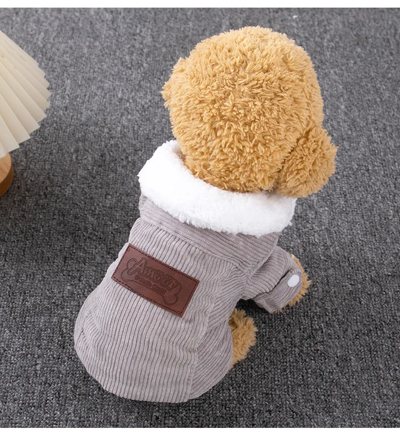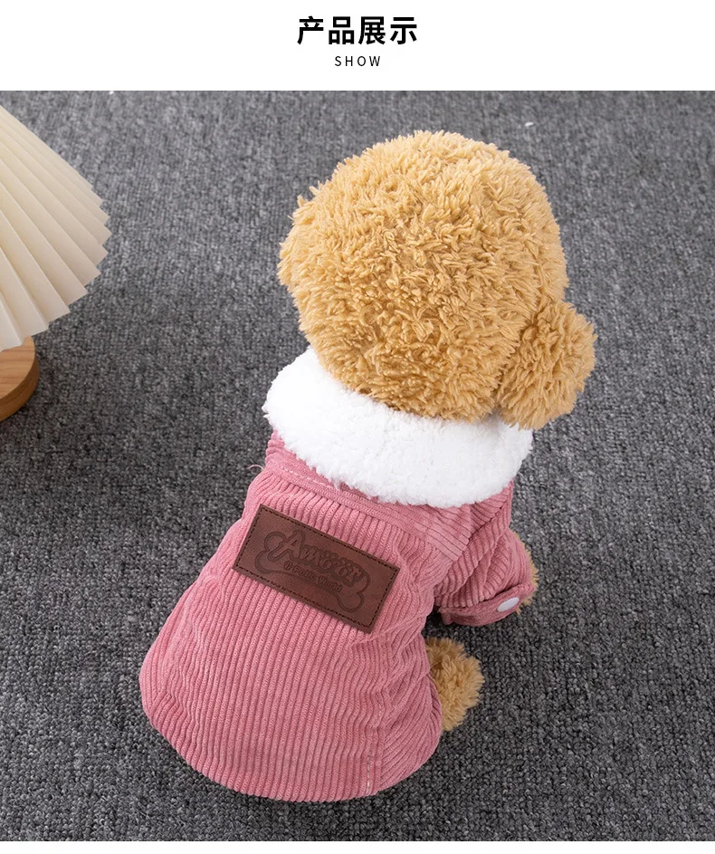 Abrigo con cuello de felpa de pana para perros, chaleco cálido de terciopelo para otoño e invierno, chaleco de lana de cordero, oso de peluche, ropa para perros pequeños