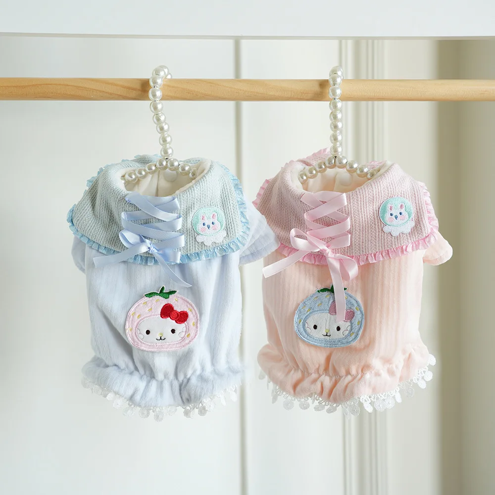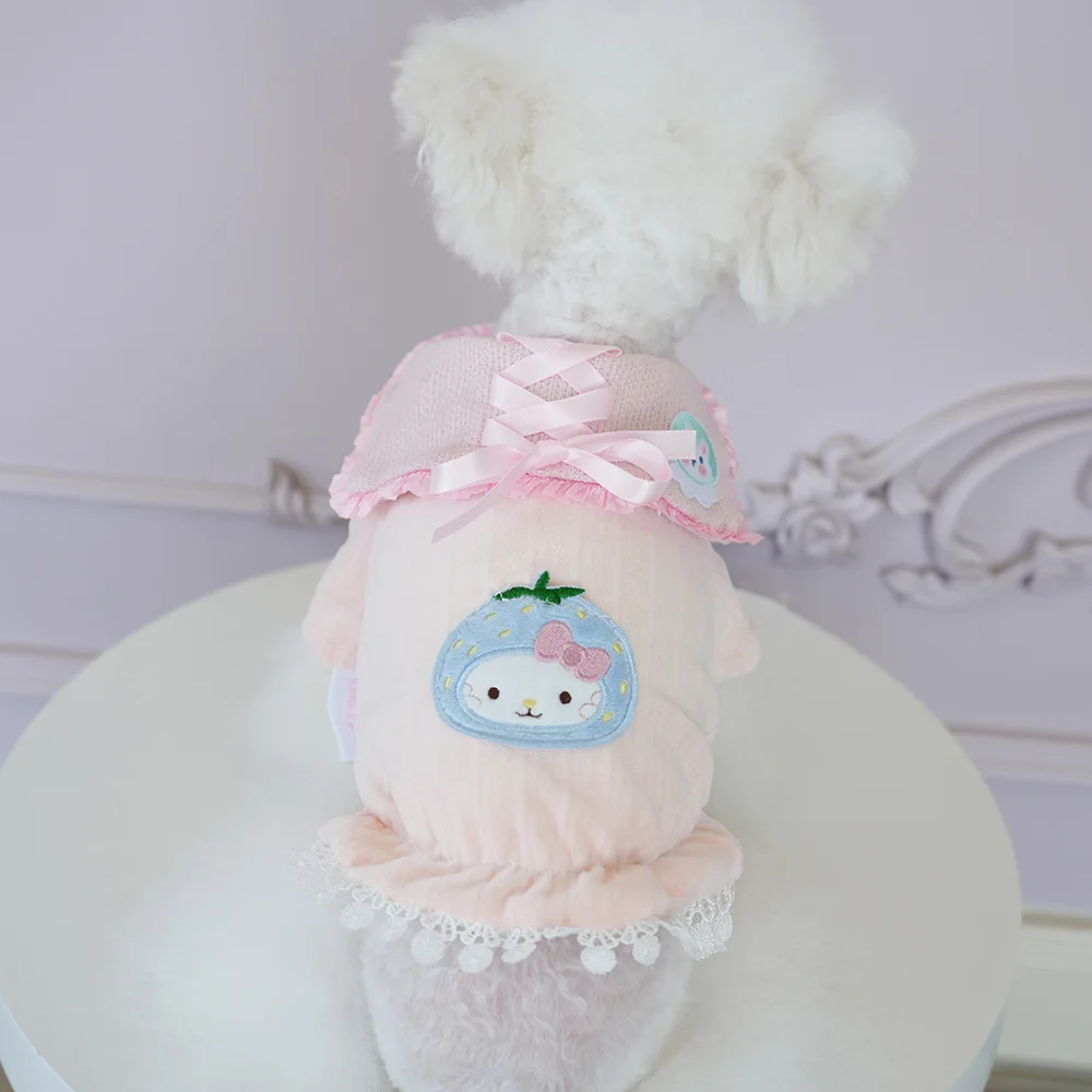 Abrigo con cuello de otoño/invierno para mascotas, abrigo de peluche con fresa para gatos, abrigo de dos piernas, ropa para cachorros, ropa para perros pequeños