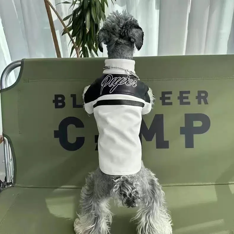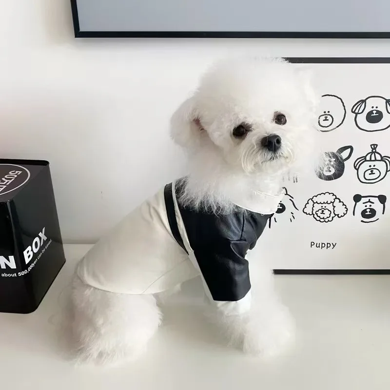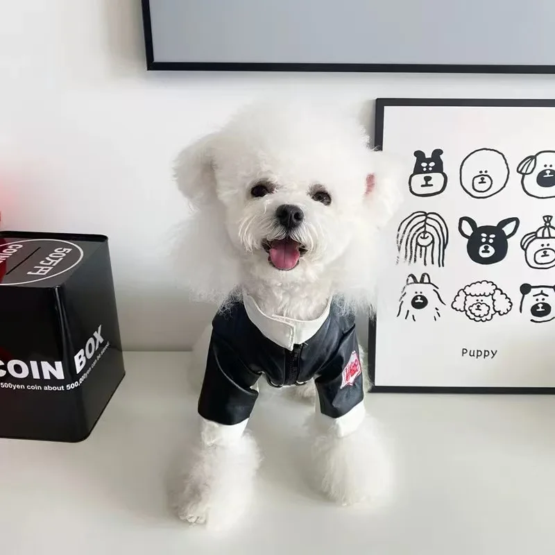 Abrigo de cuero empalmado para motocicleta de otoño/invierno para mascotas, ropa para perros y gatos, abrigo bonito de oso de peluche, ropa para cachorros pequeños