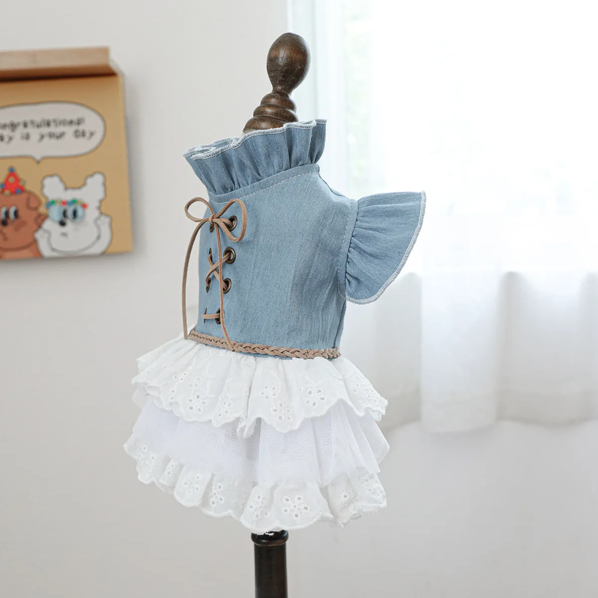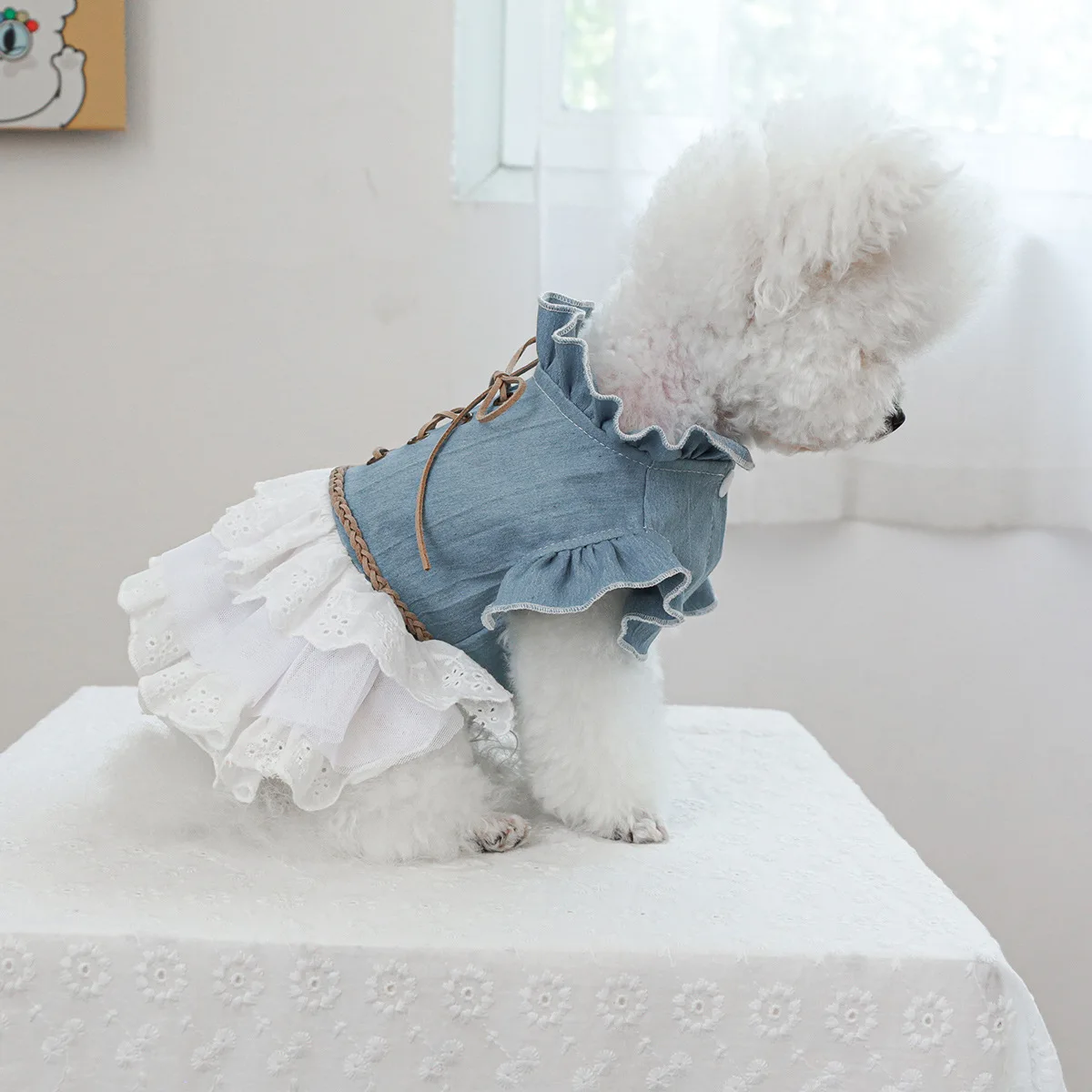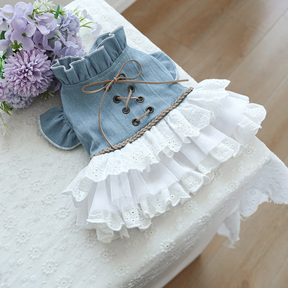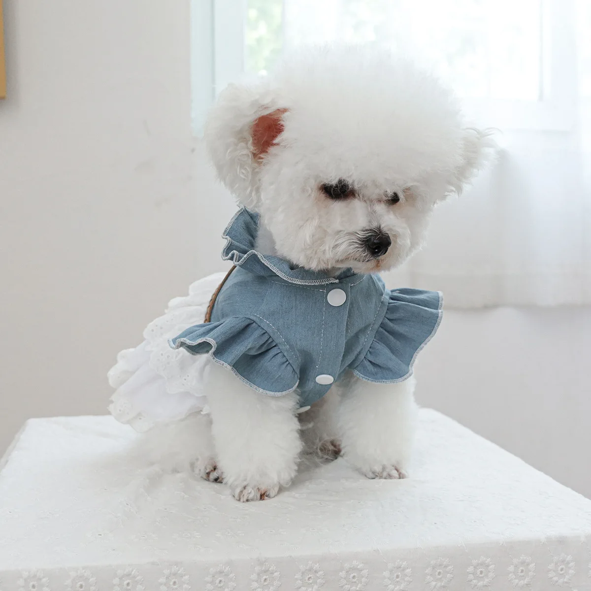 Abrigo de encaje de vaquero para mascotas, vestidos para perros, gatos, estanques, faldas de vaquero bonitas, vestidos para perros pequeños, ropa para cachorros para perros pequeños