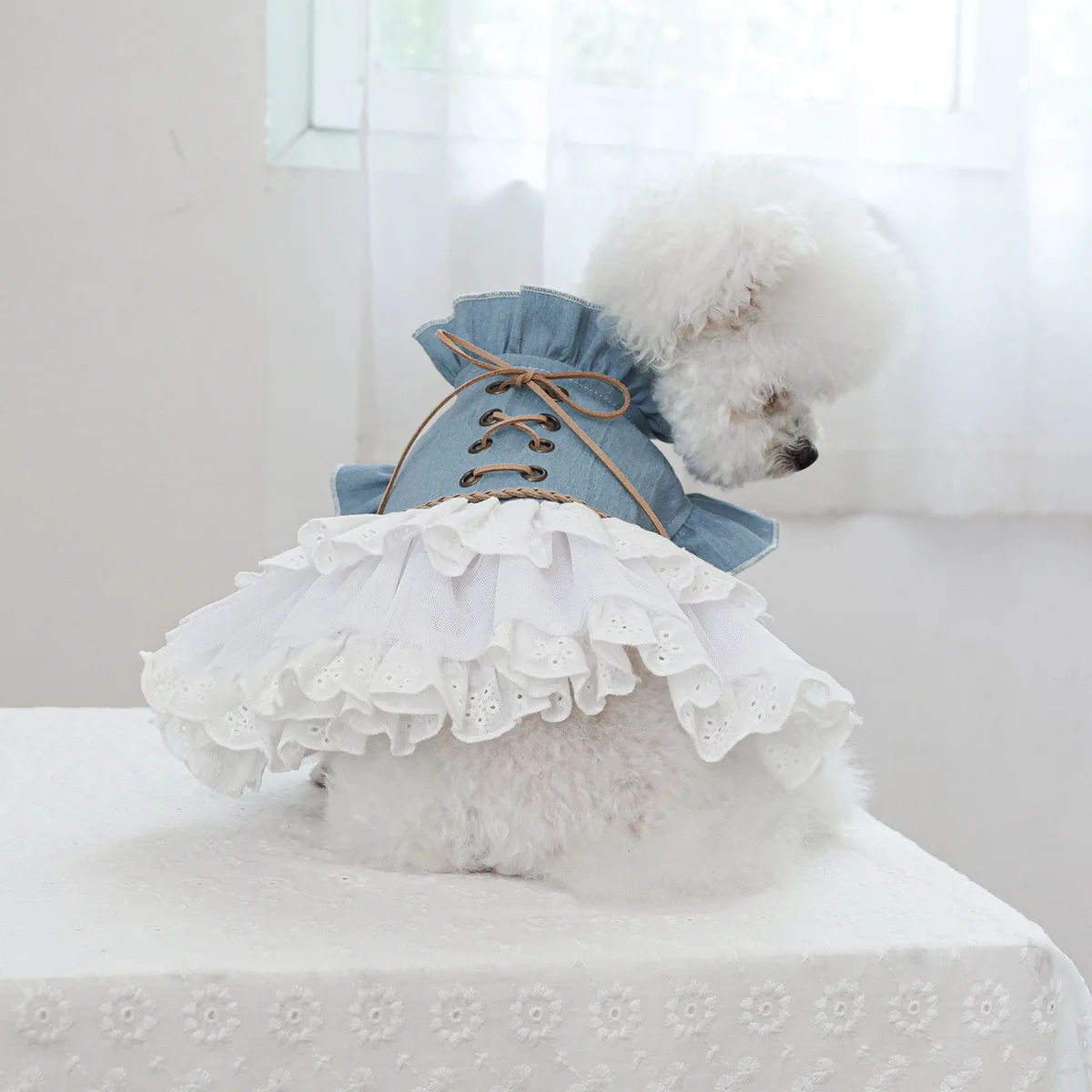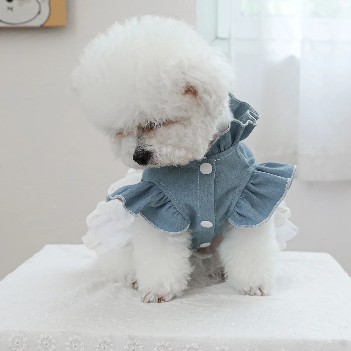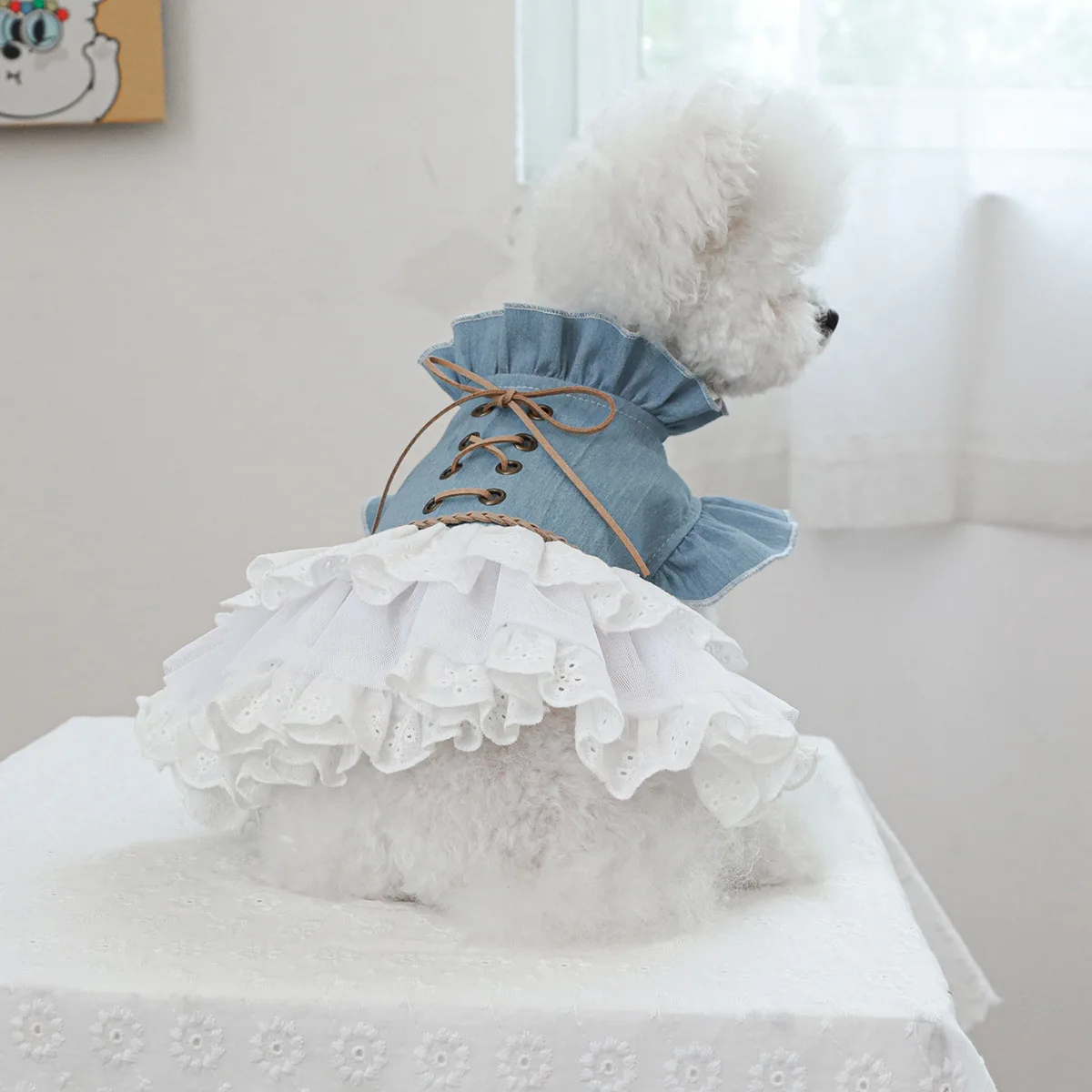 Abrigo de encaje de vaquero para mascotas, vestidos para perros, gatos, estanques, faldas de vaquero bonitas, vestidos para perros pequeños, ropa para cachorros para perros pequeños