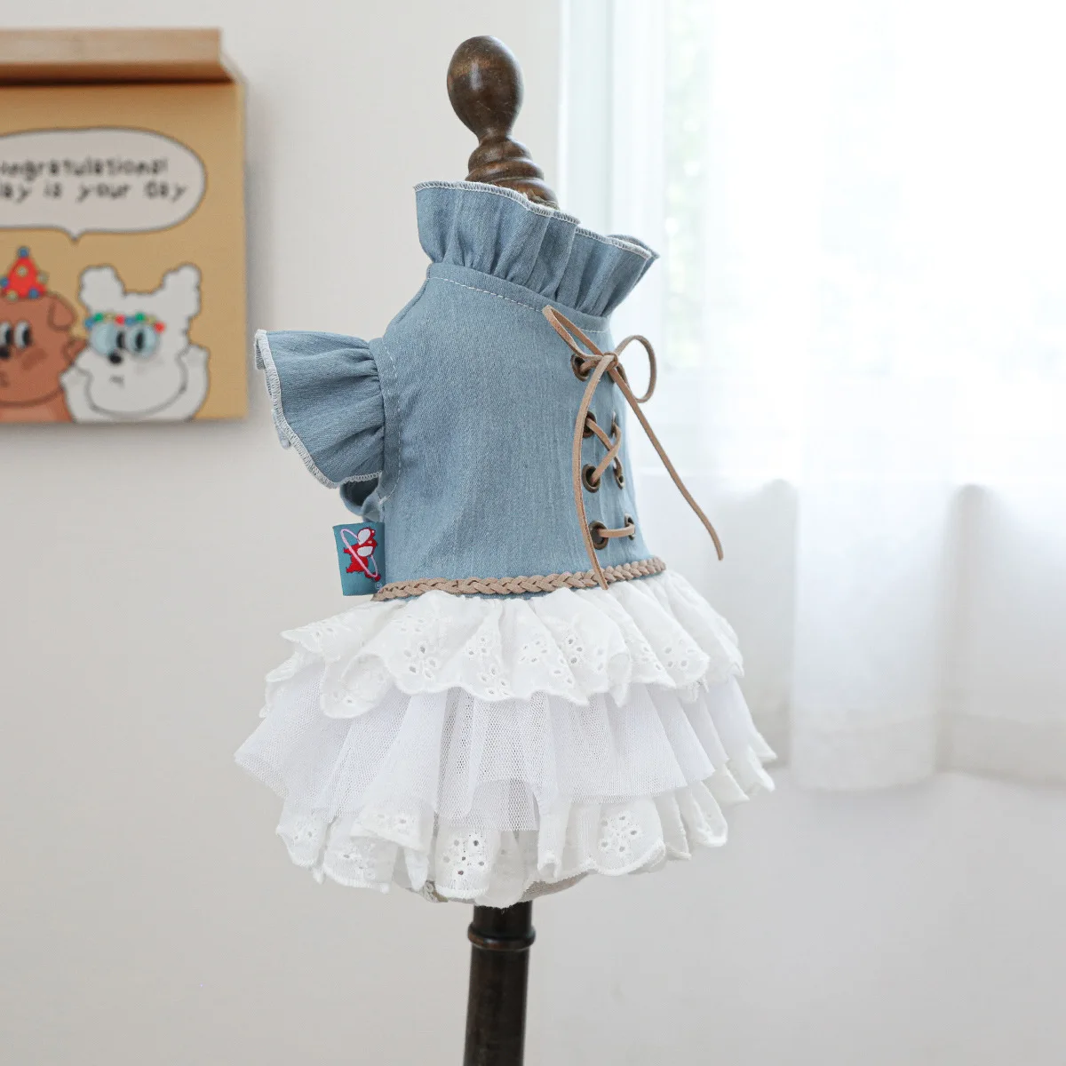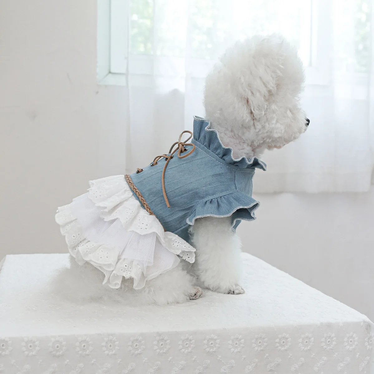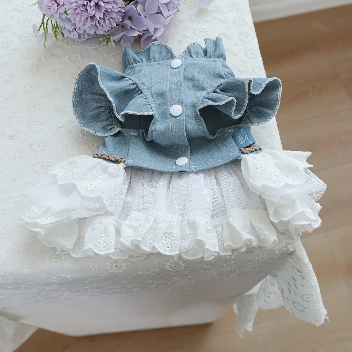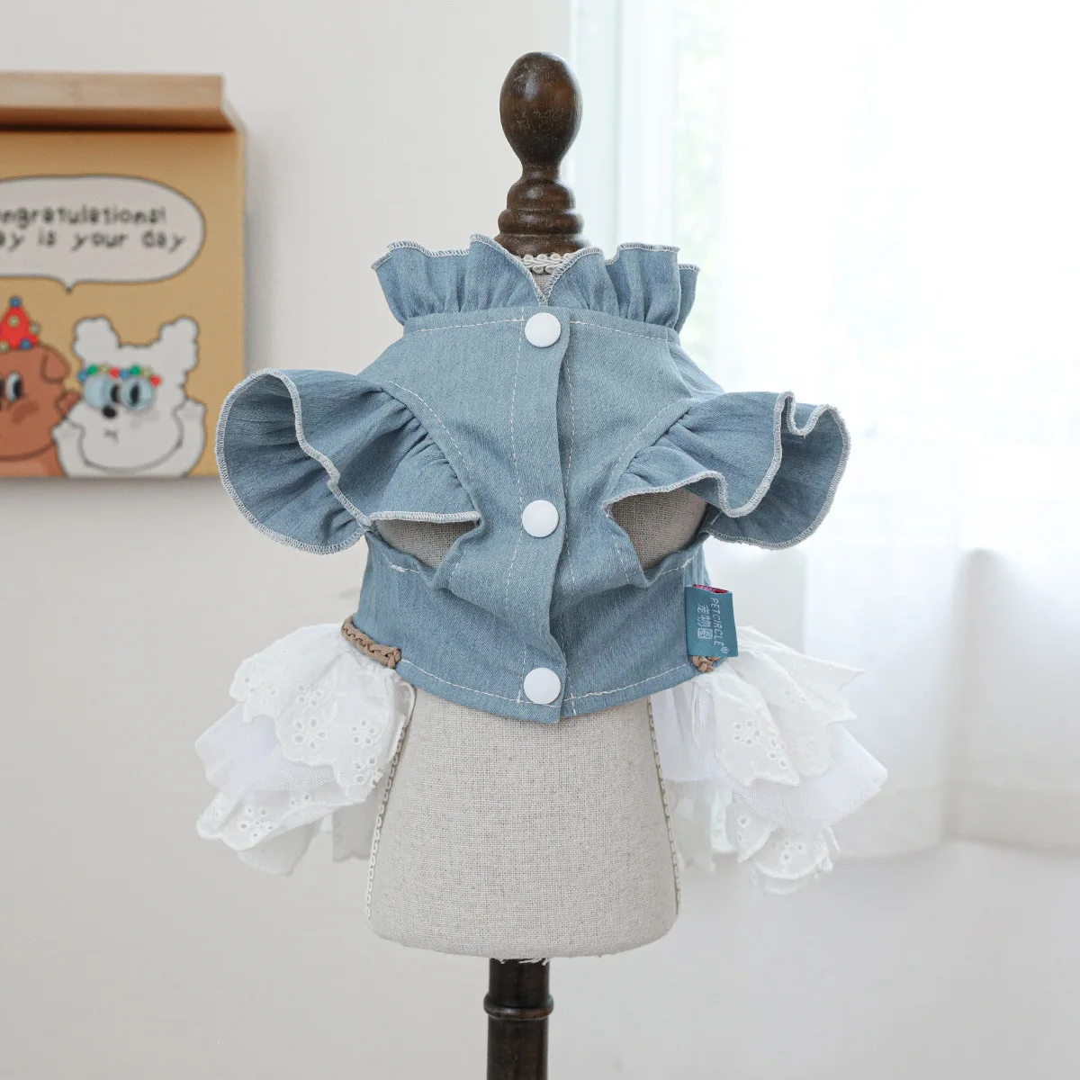 Abrigo de encaje de vaquero para mascotas, vestidos para perros, gatos, estanques, faldas de vaquero bonitas, vestidos para perros pequeños, ropa para cachorros para perros pequeños