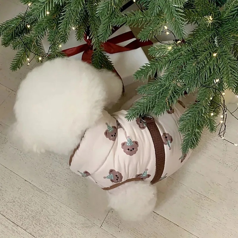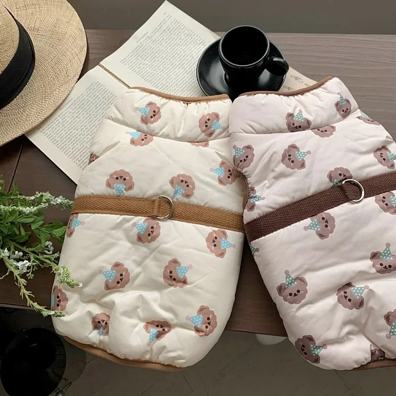 Abrigo con estampado de perro bonito para mascota, abrigo cálido de algodón para cachorros, chaqueta Bichon con correa, ropa de dos patas con dibujos de Schnauzer
