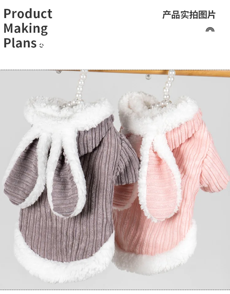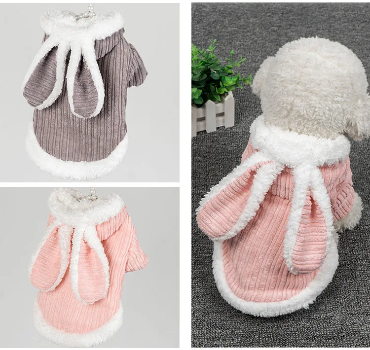 Abrigo exterior con Orejas de conejo de peluche para otoño/invierno, ropa para perros, osos de peluche, cachorros y gatos, ropa para cachorros, ropa para perros pequeños