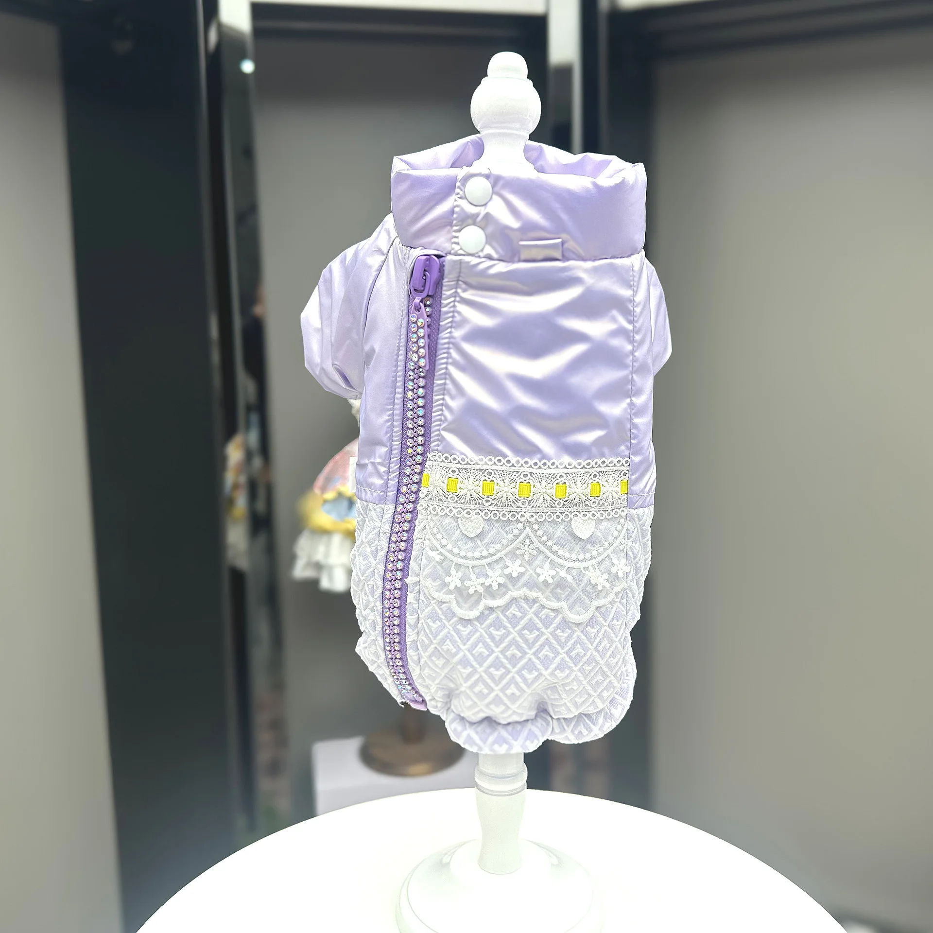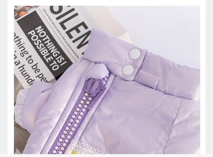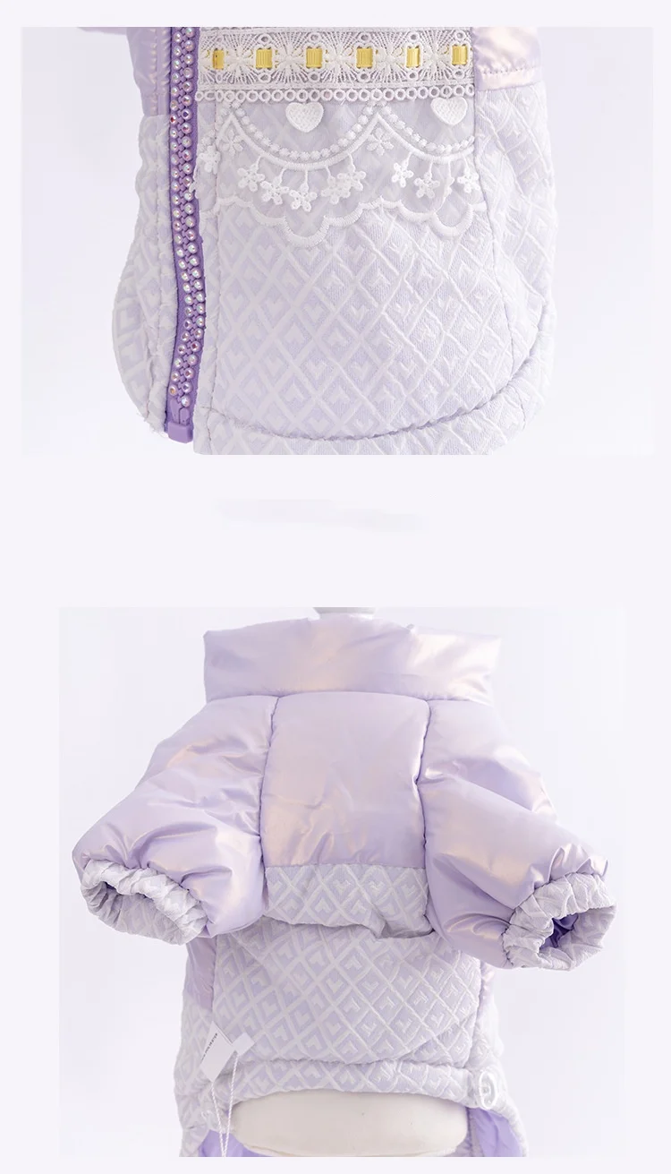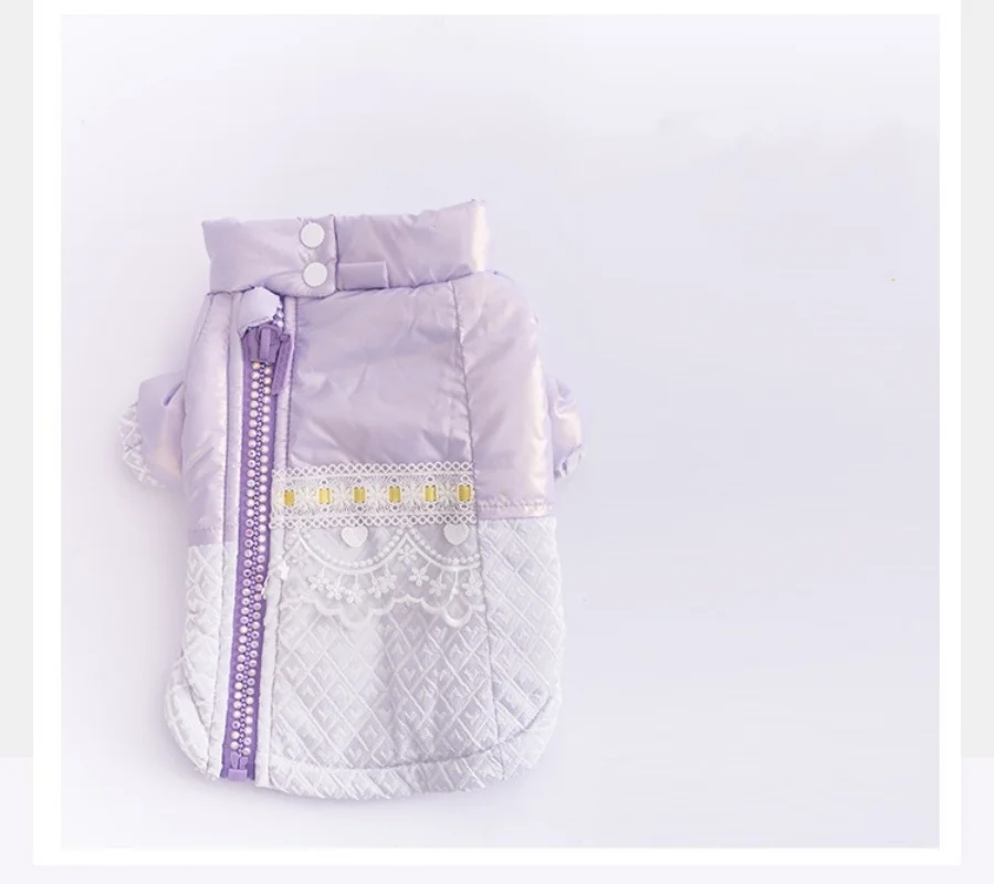 Abrigo Extra cálido de encaje para perro, chaqueta de invierno para perro pequeño, Abrigo acolchado de algodón para cachorro, ropa a prueba de viento para perro, color morado