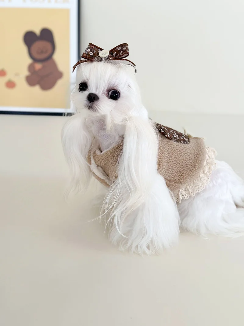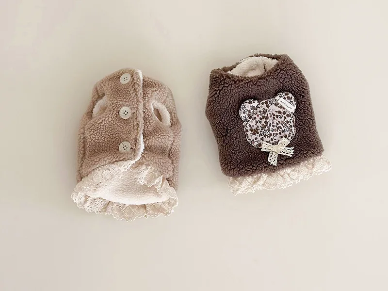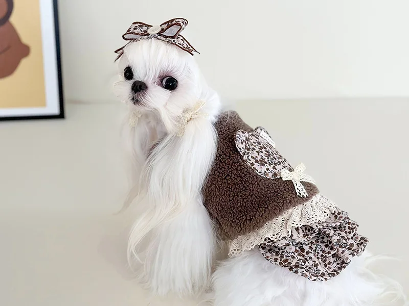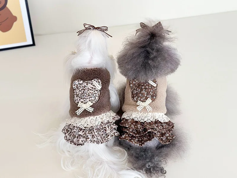Abrigo de felpa de flores para mascotas, falda de pastel de flores para perros, lindo sombrero de felpa para perros, ropa de invierno, chaleco grueso, falda inferior