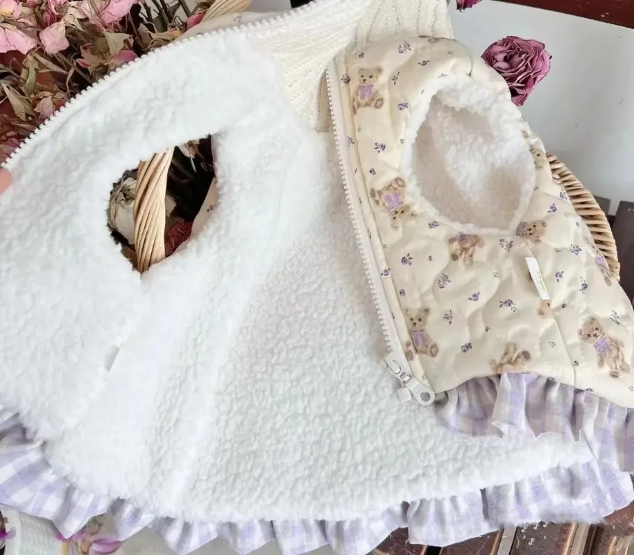 Abrigo Floral de encaje a cuadros para mascotas, Parkas de invierno para perros, camisa Base con lazo más grueso, chaquetas de osos de peluche, ropa para cachorros pequeños