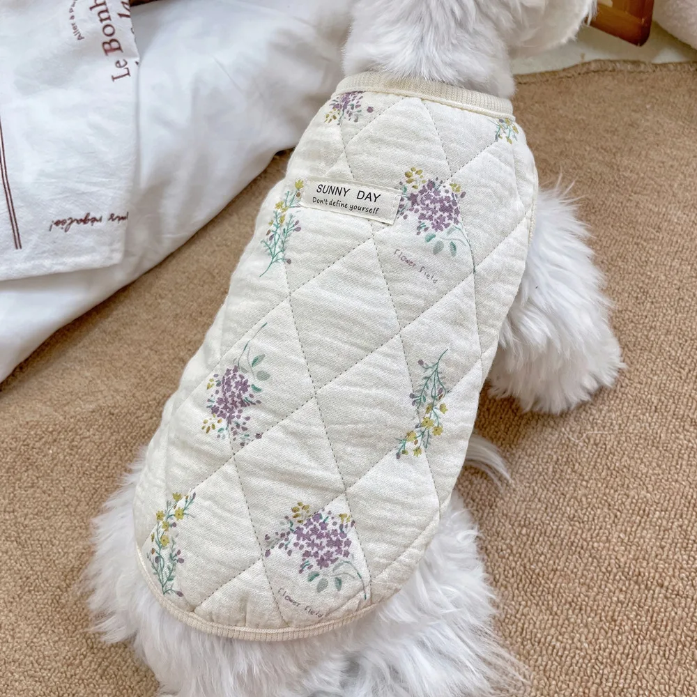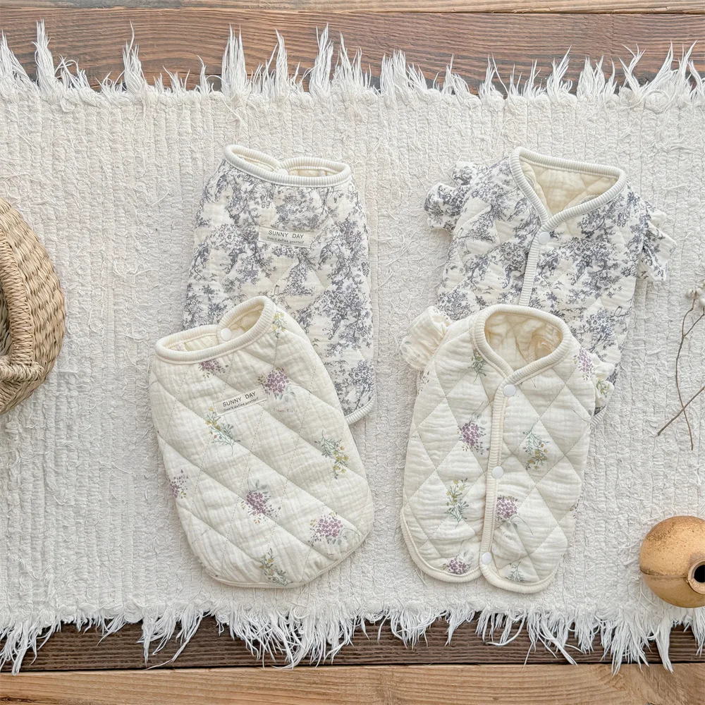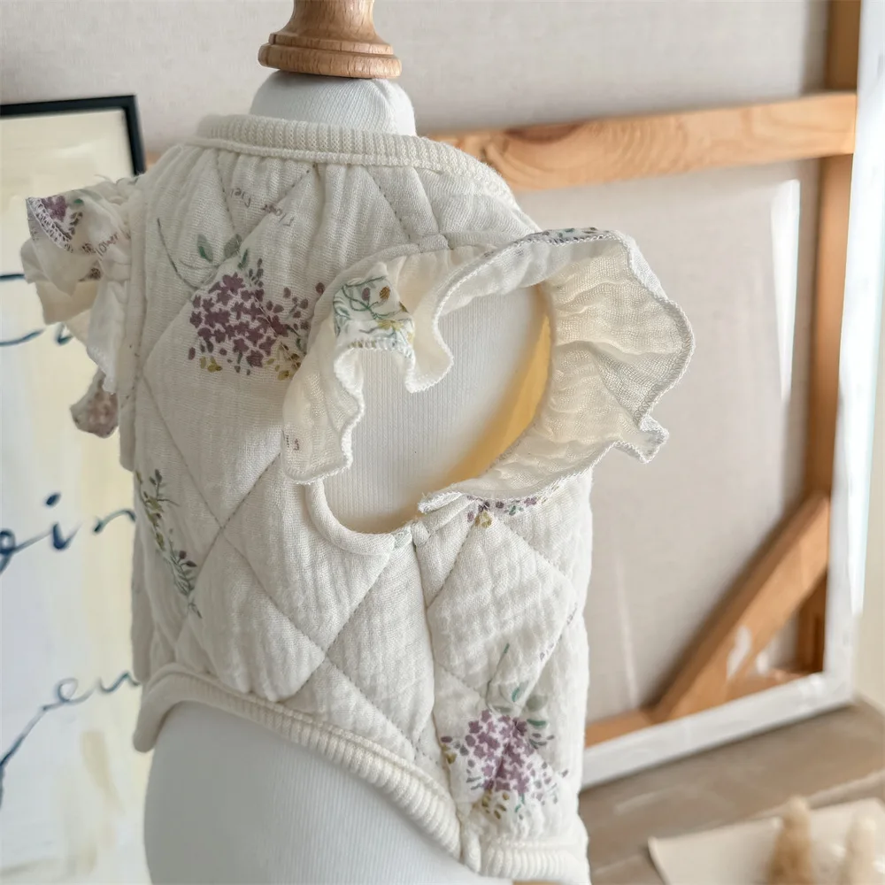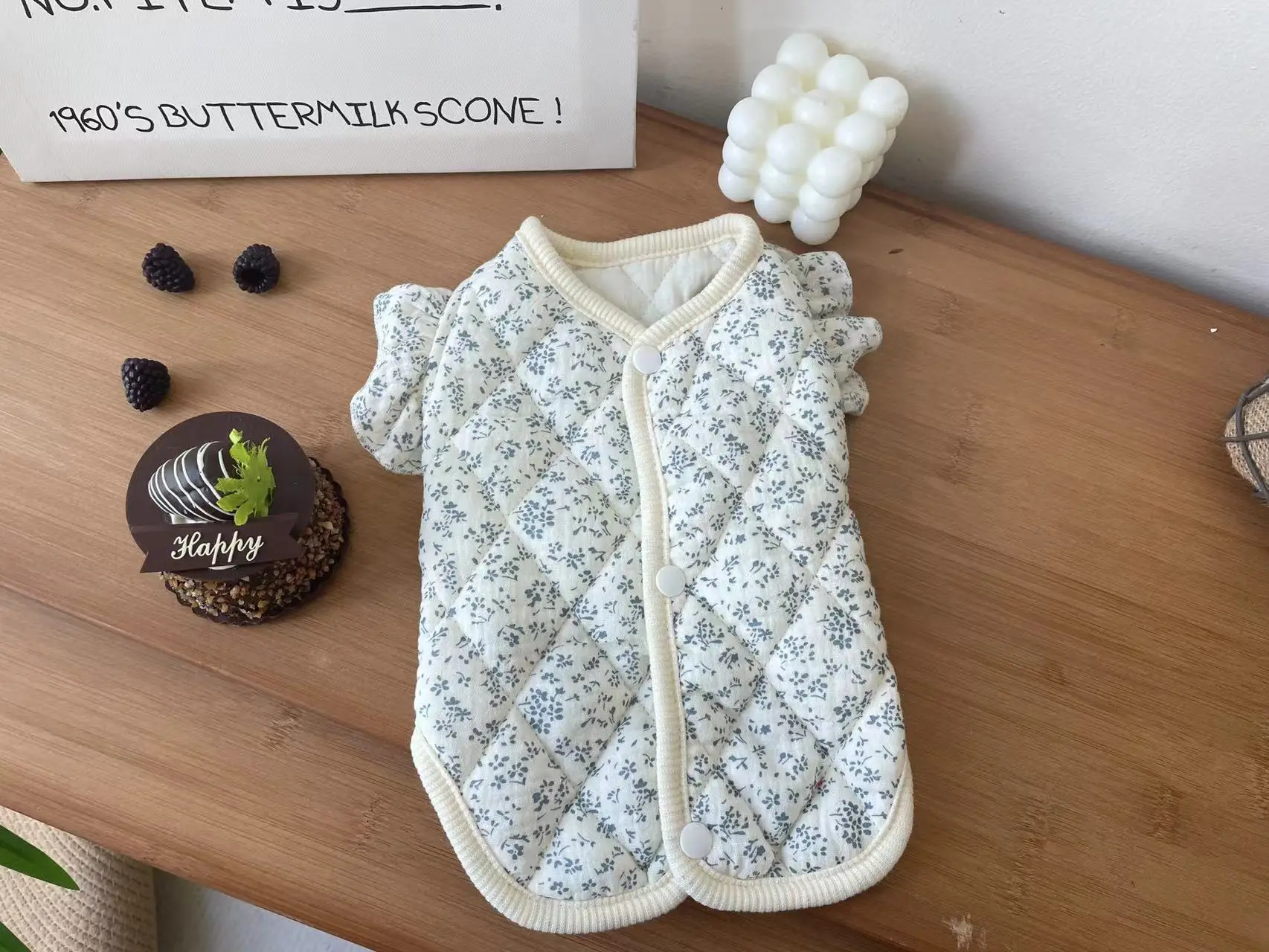 Abrigo Floral de otoño e invierno para mascotas, ropa de gasa con mangas voladoras para mascotas, ropa gruesa para el hogar, ropa cálida para perros pequeños y gatos
