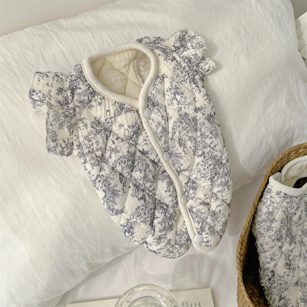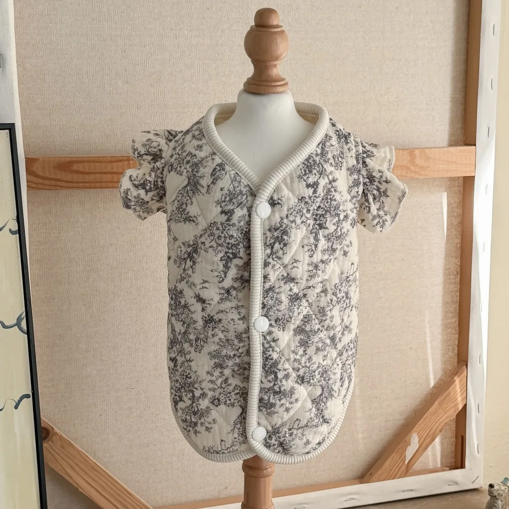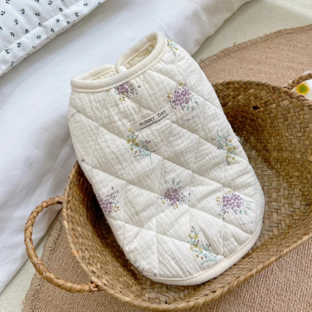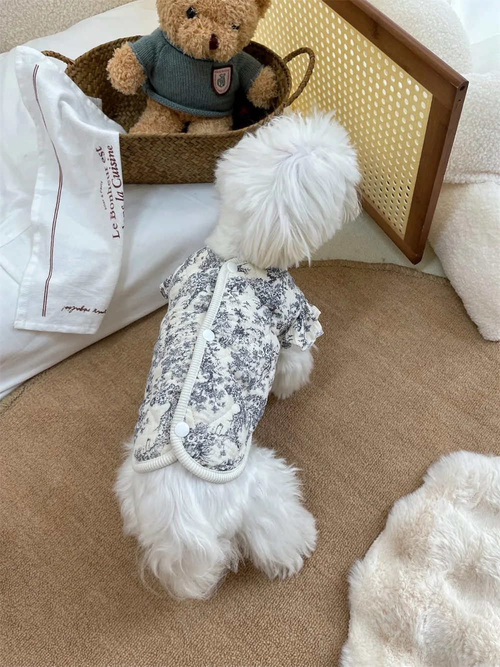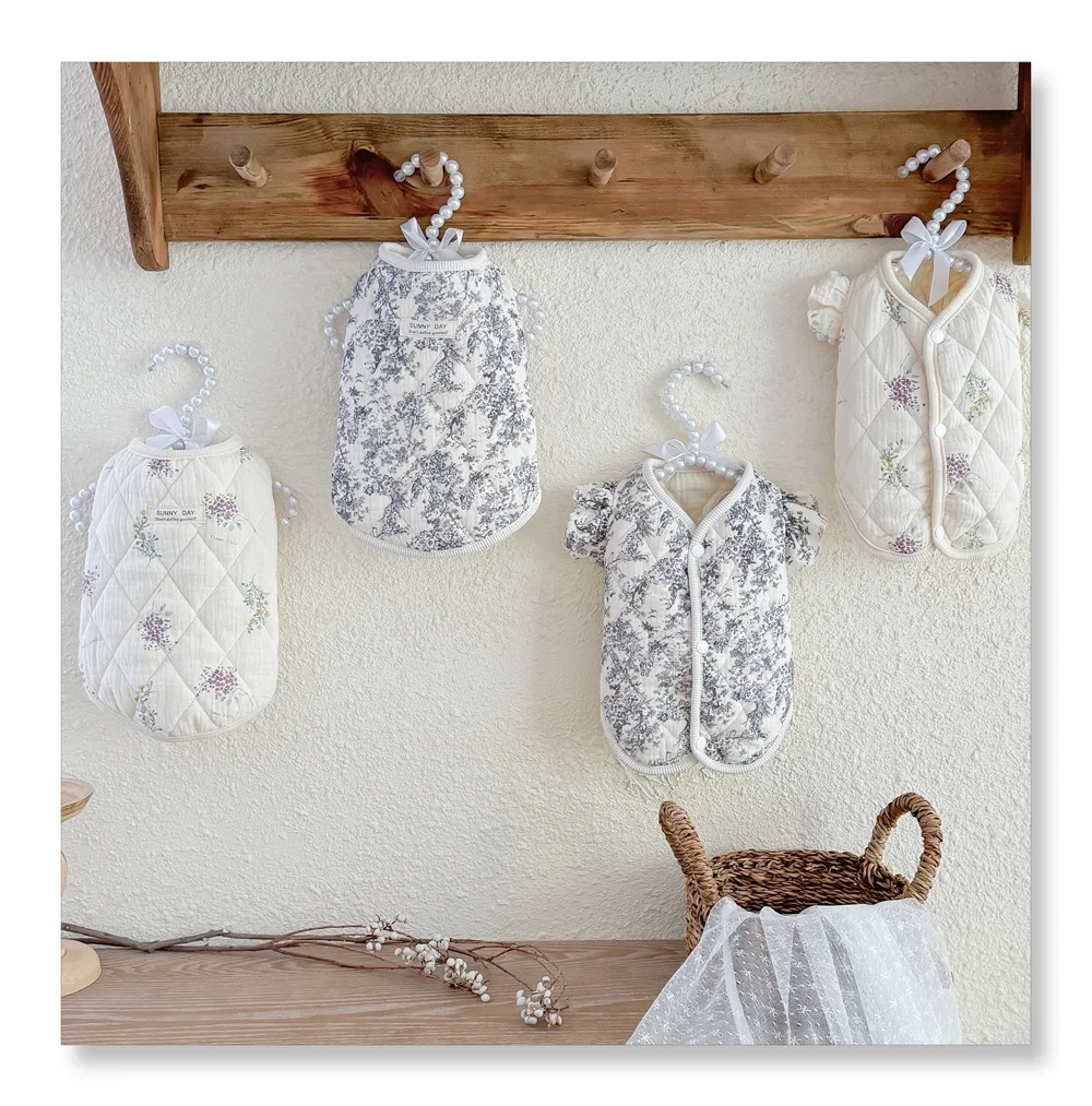 Abrigo Floral de otoño e invierno para mascotas, ropa de gasa con mangas voladoras para mascotas, ropa gruesa para el hogar, ropa cálida para perros pequeños y gatos