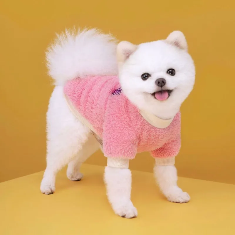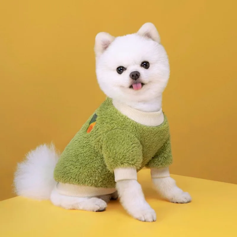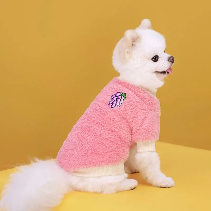 Abrigo de frutas para cachorros, ropa cálida para perros, ropa de otoño e invierno para mascotas, sudadera de peluche de pelo largo de doble cara, jersey de cuello alto