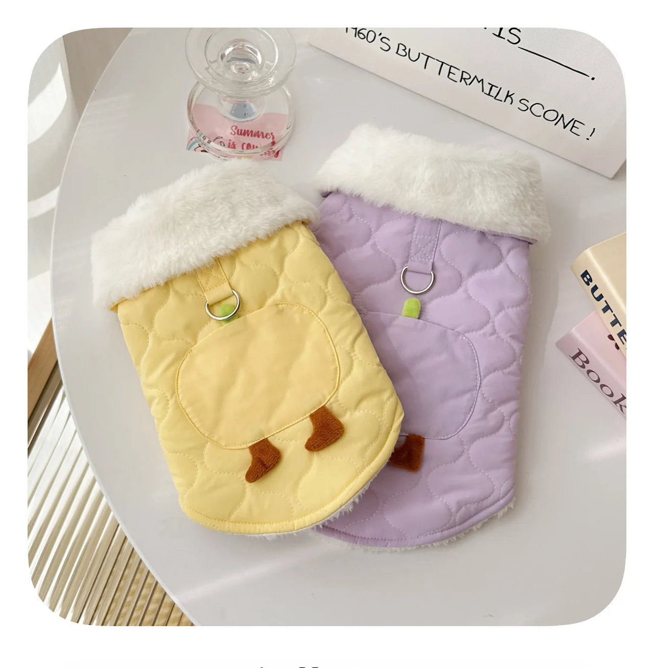Abrigo grueso de dibujos animados para otoño e invierno, abrigo de retales de lana de cordero, Parkas cálidas para gatos, ropa para mascotas, perros pequeños y medianos