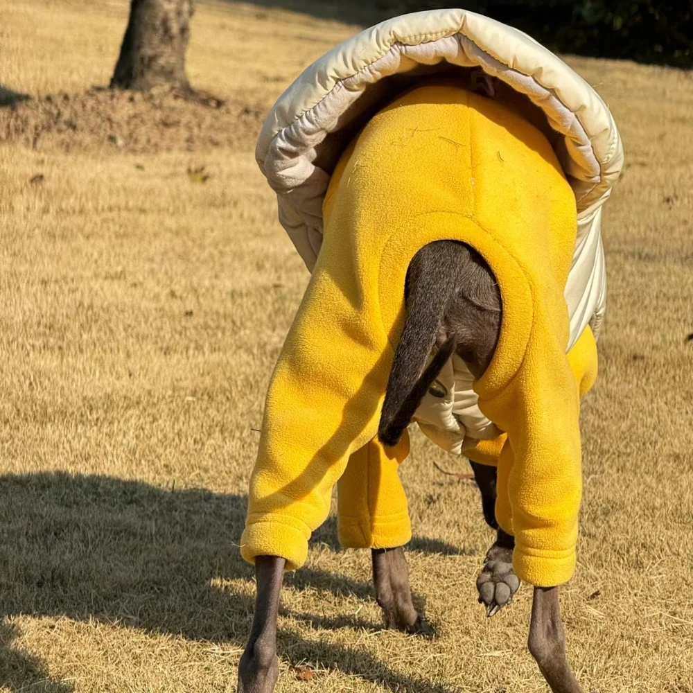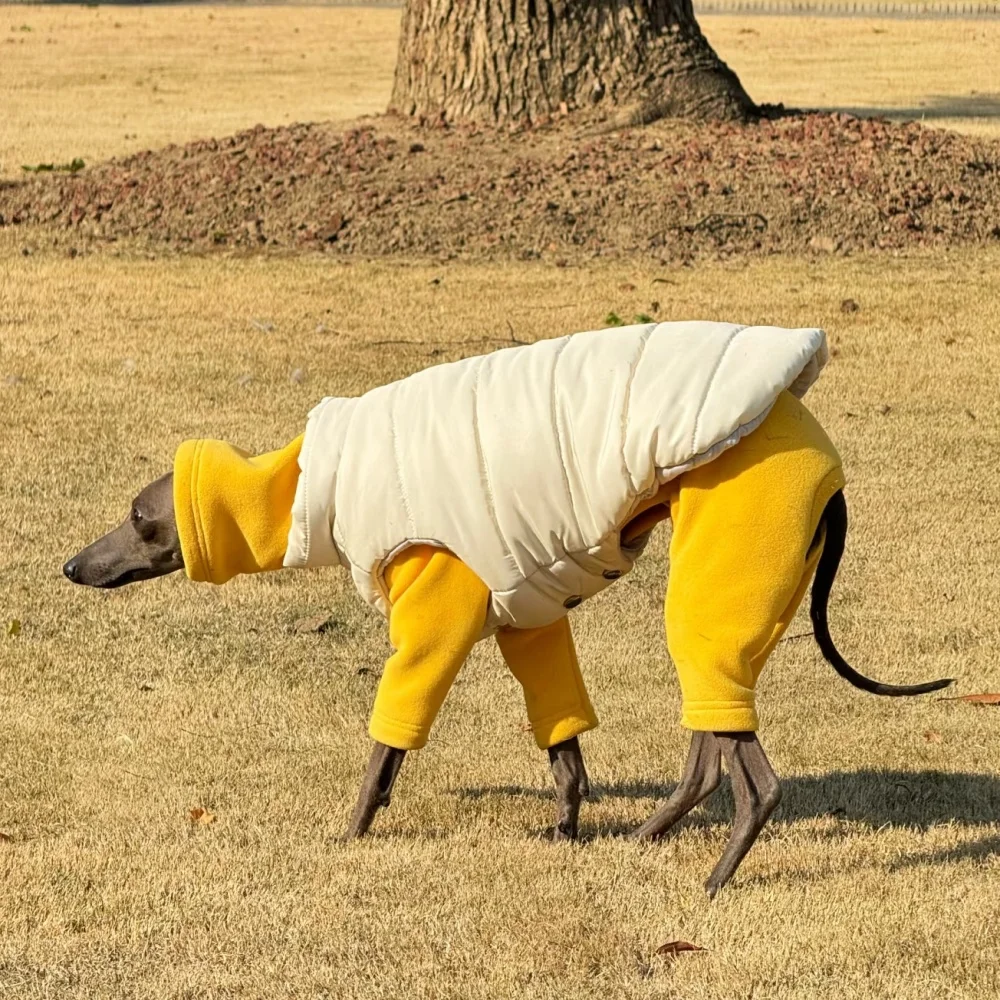 Abrigo grueso de invierno para perros con bloqueo de correa Sudadera de forro polar morado de 4 patas de primavera para galgo italiano Whippet en otoño