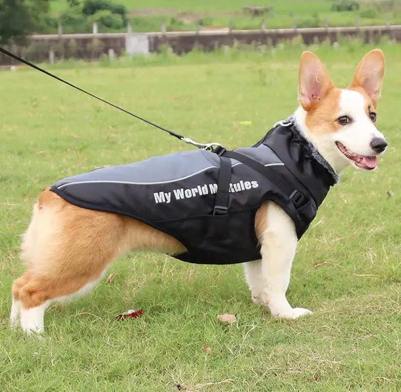 Ropa cálida para mascotas, abrigo impermeable de invierno para perro grande con cuello peludo, chaqueta gruesa para perro, disfraz de labrador Bulldog, chaleco reflectante