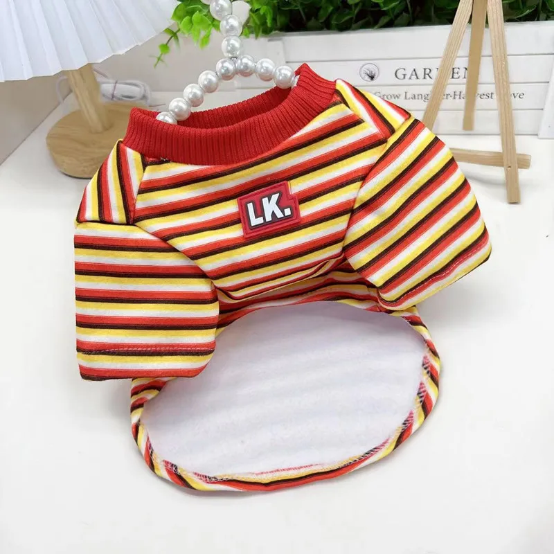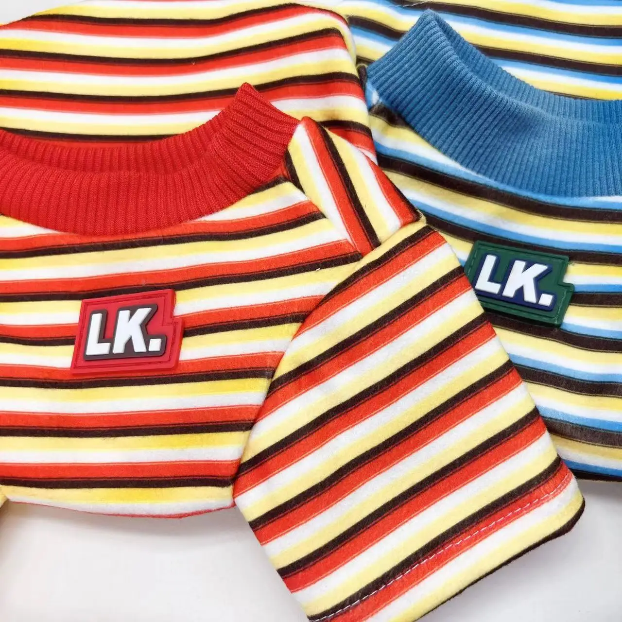 Abrigo inferior a rayas para perros pequeños, sudadera a rayas de otoño e invierno, oso de peluche, ropa para cachorros y mascotas de tamaño pequeño y mediano