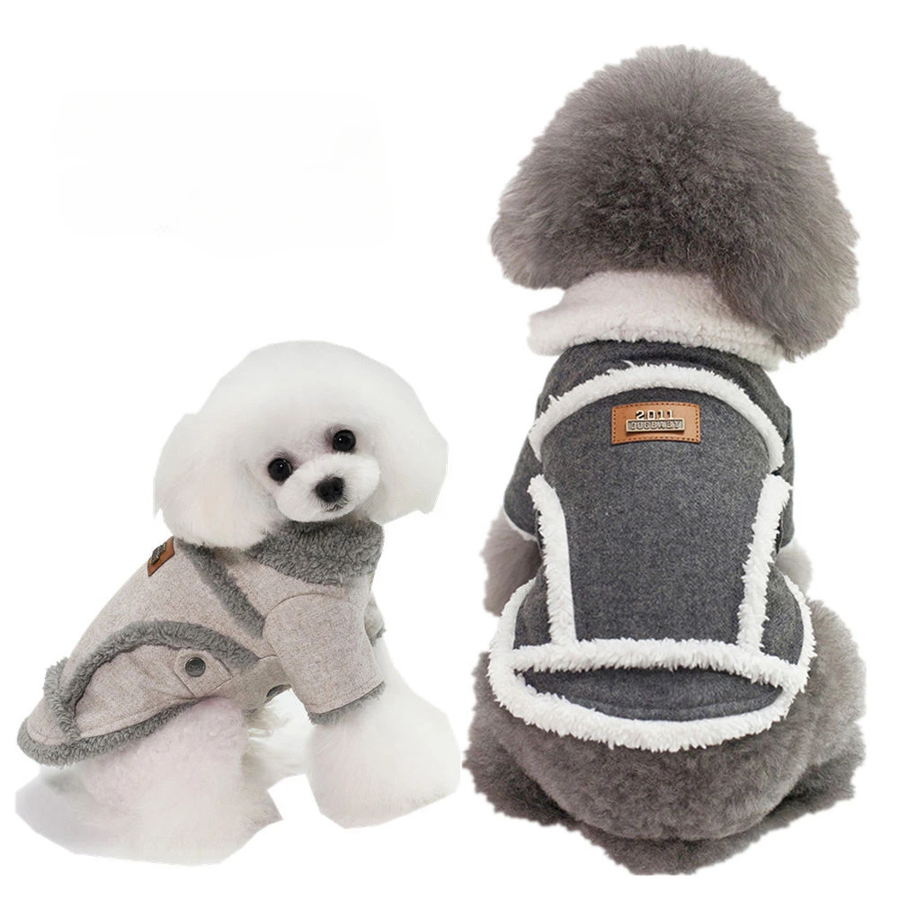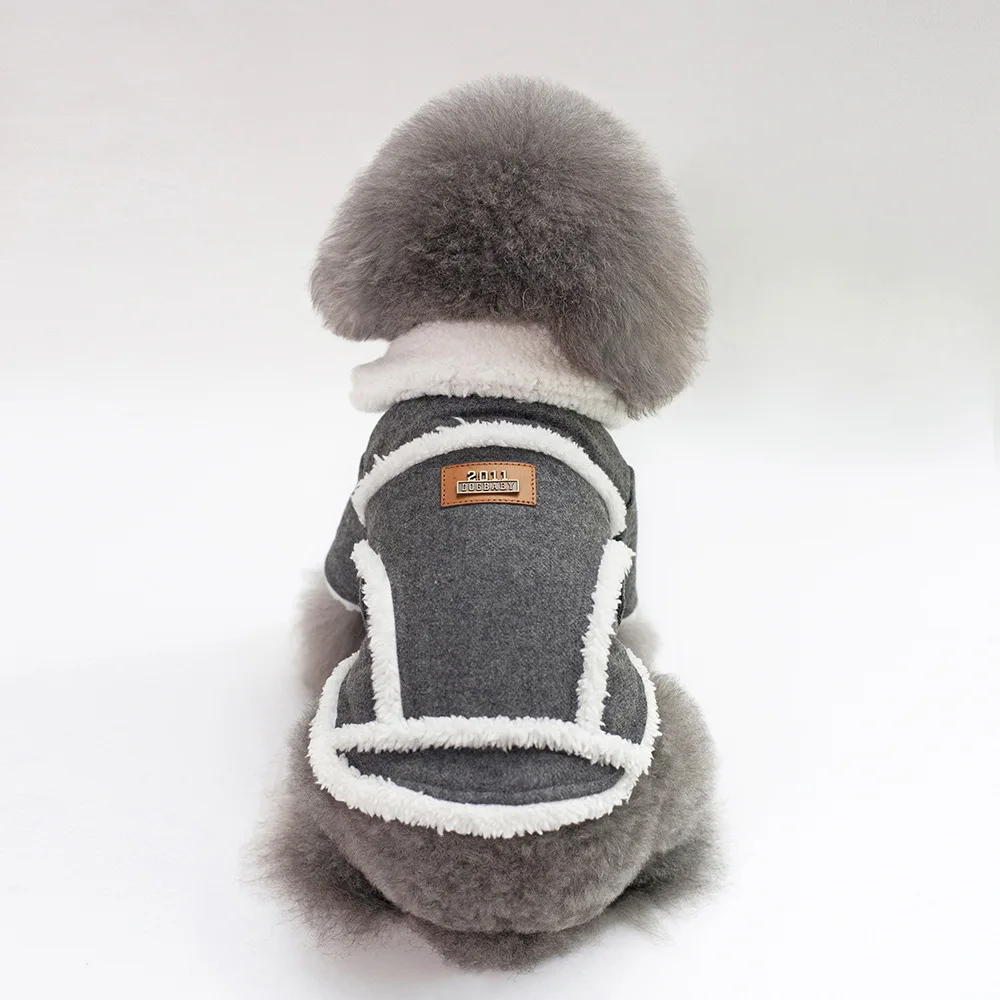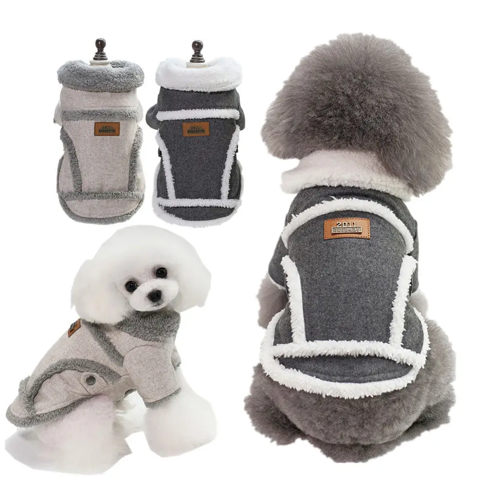 Abrigo integrado de piel para mascotas, abrigo con solapa de felpa para perros, perros pequeños y medianos, chaqueta de dos piernas para otoño e invierno, ropa para cachorros