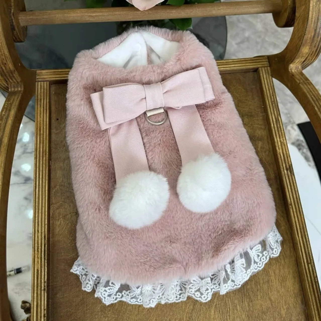 Abrigo de invierno peludo para perro con lazo grande, Chaqueta corta de piel de conejo, vestido de princesa para perro pequeño, ropa para perro Bichon