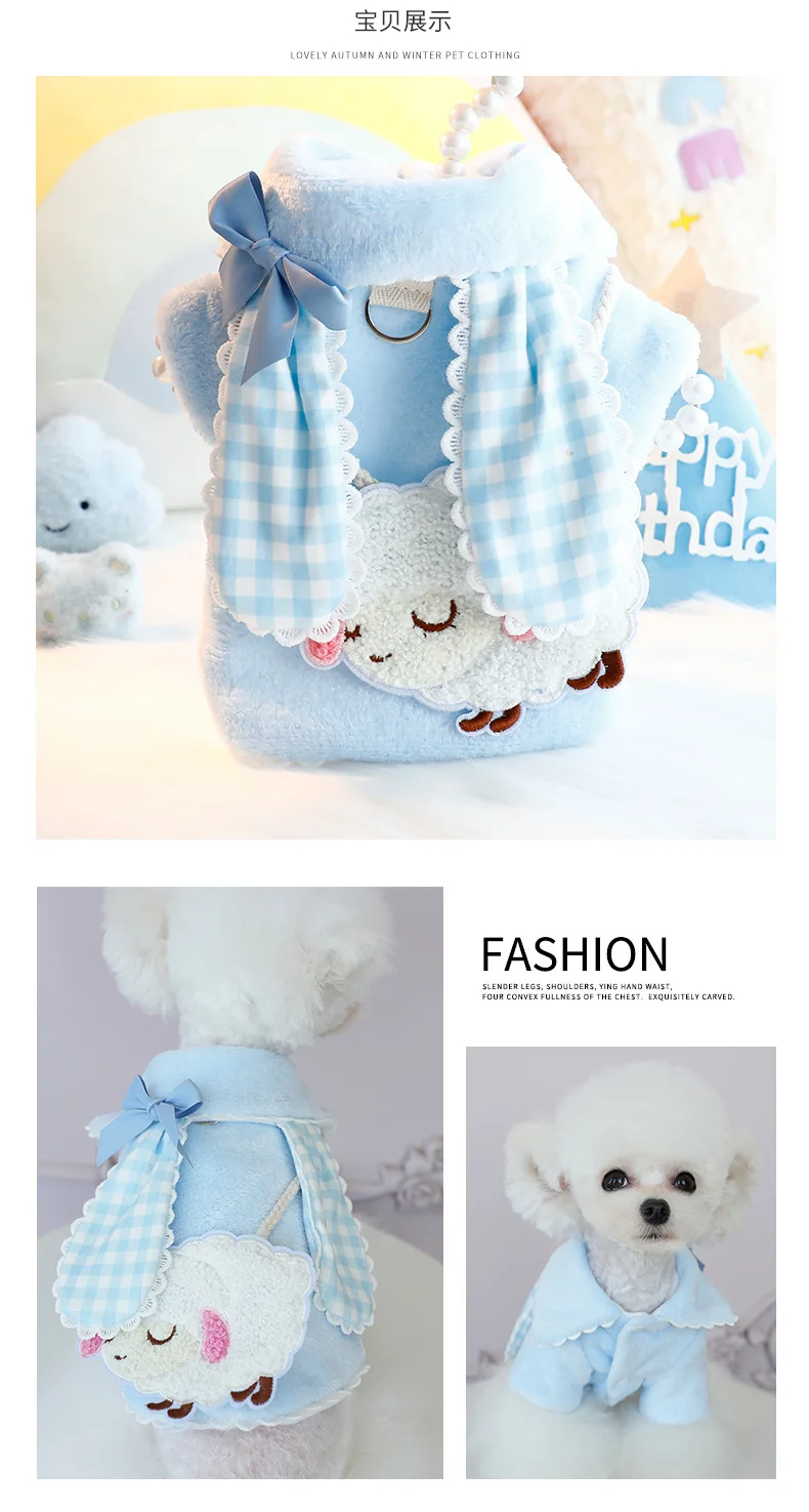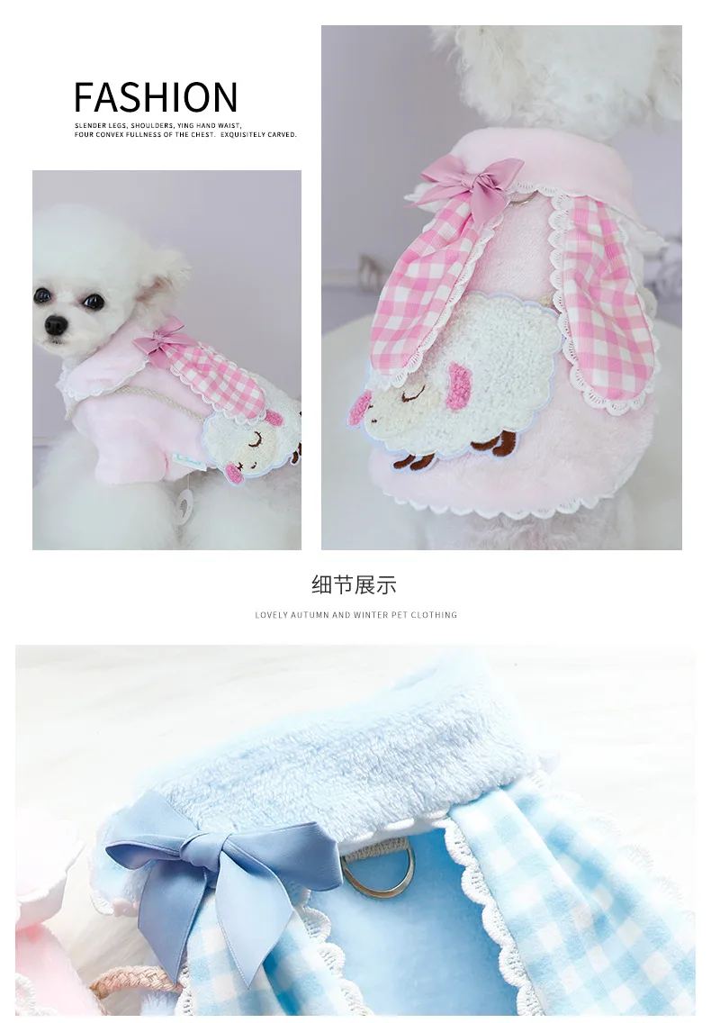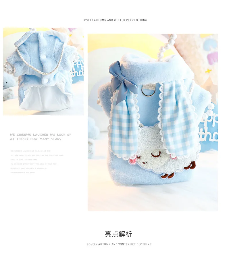 Abrigo de invierno para perro, Chaqueta gruesa de algodón de princesa con diseño de orejas bonitas, ropa para perros pequeños para traje de peluche Bichon Chihuahua