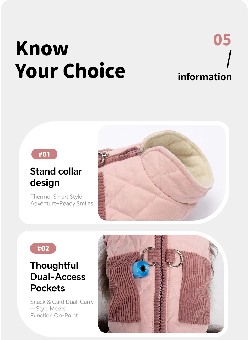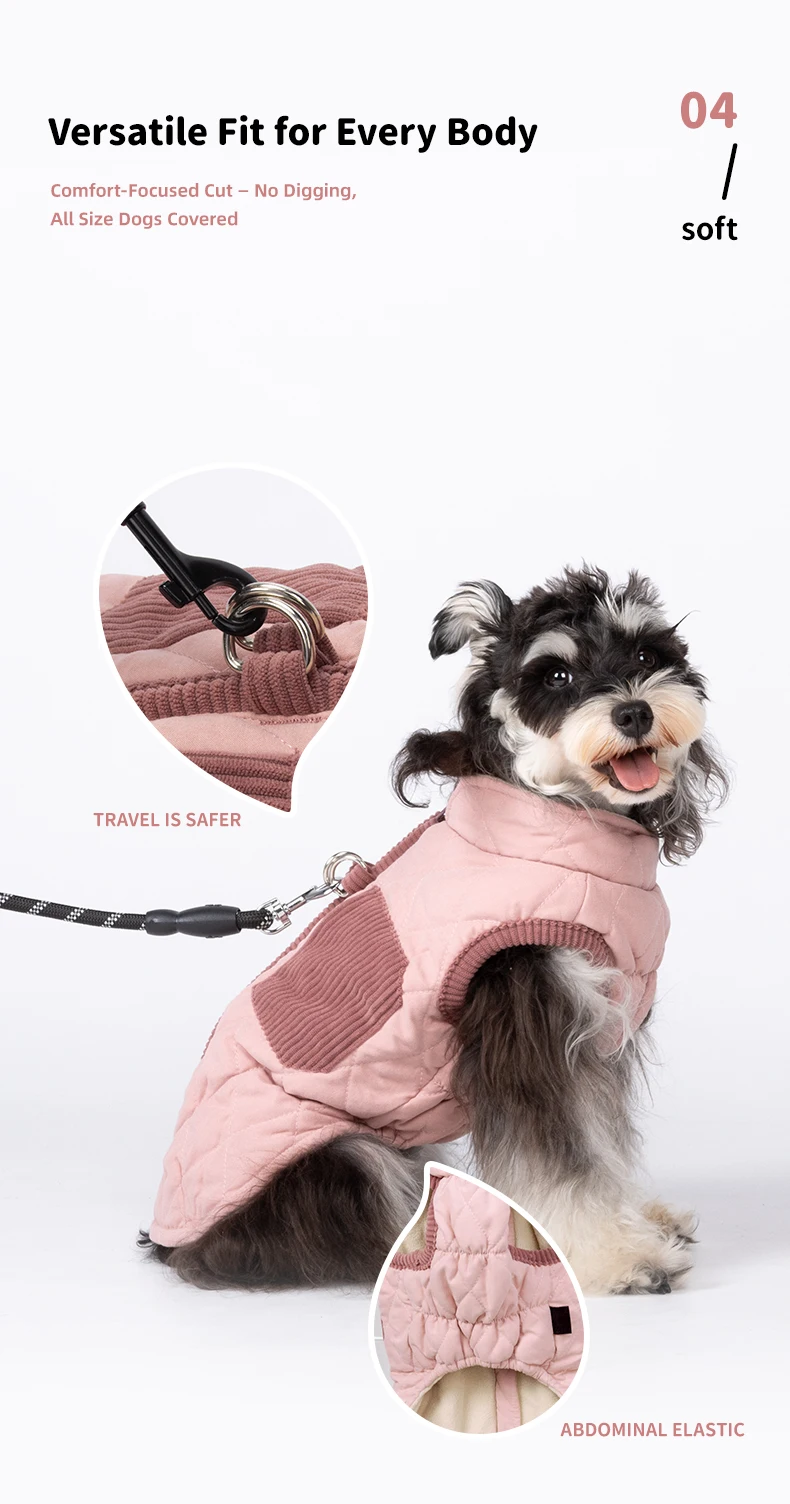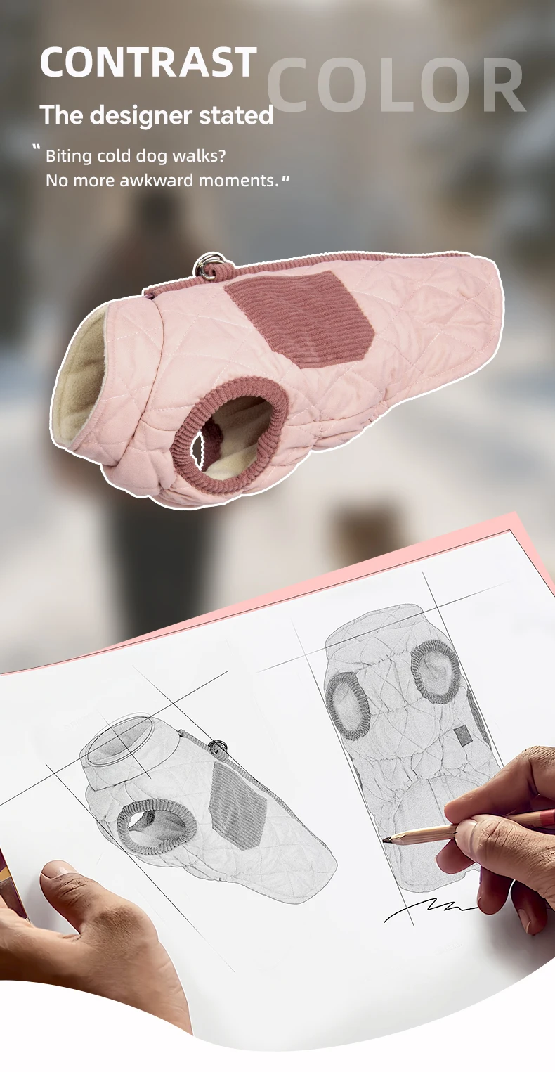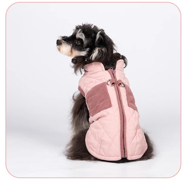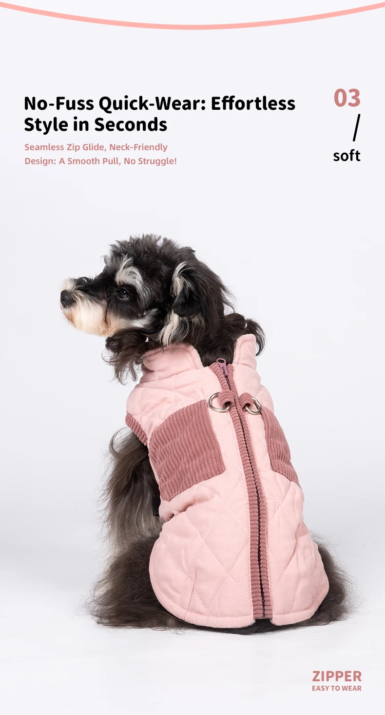 Abrigo de invierno para perro con estampado de diamantes, chaqueta de felpa cálida, fácil de usar, rápido, con acceso al correa, reflectante para razas pequeñas