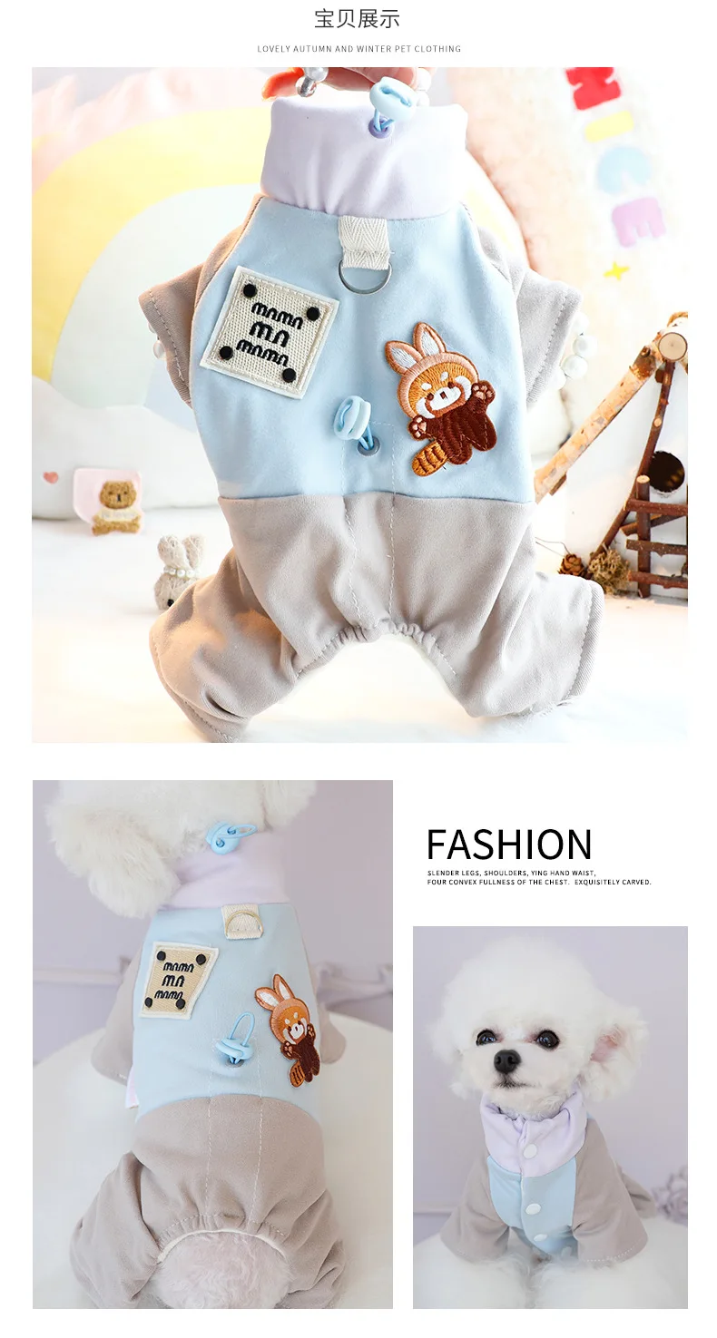 Abrigo de invierno para perros Chaqueta de algodón gruesa de 4 patas Diseño lindo de panda, traje cálido para clima frío para perros pequeños
