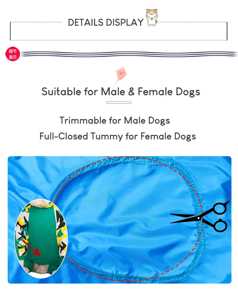 Diseño de barriga completamente cerrado, puedes recortarlo para perros masculinos.