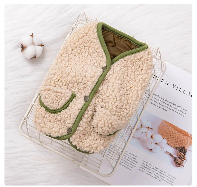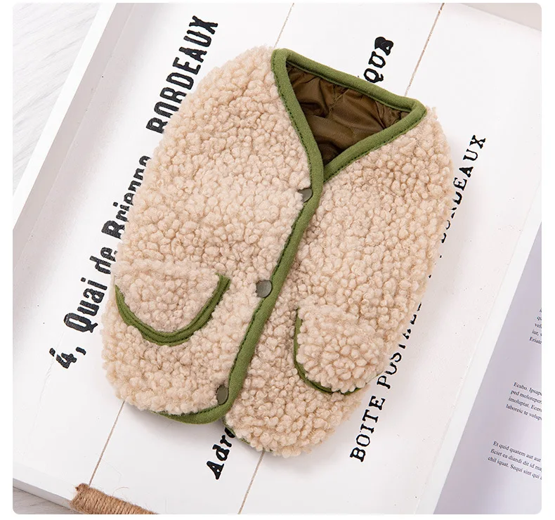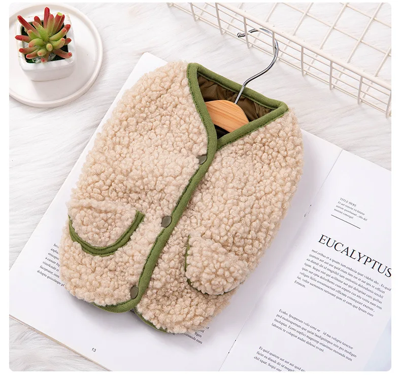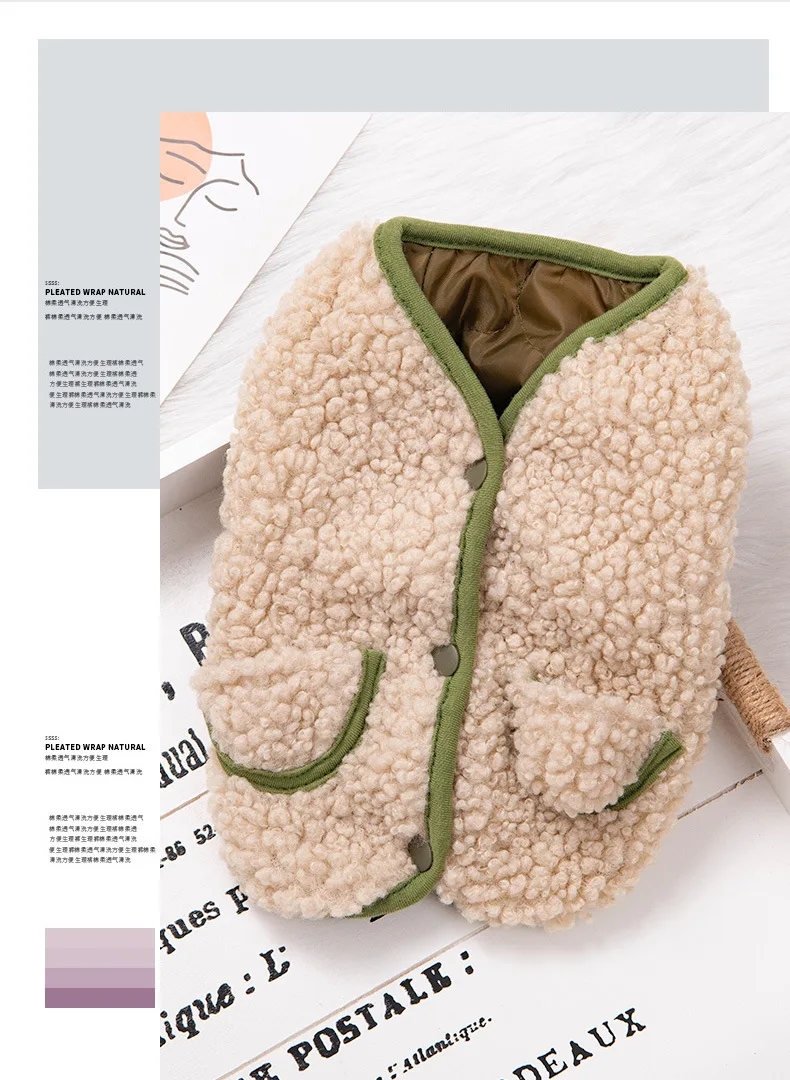 Abrigo de lana de cordero de otoño para mascotas, bonito chaleco con bolsillo, chaleco cálido para perros, abrigo de lana de cordero, chaqueta para mascotas, ropa para cachorros, ropa de Navidad